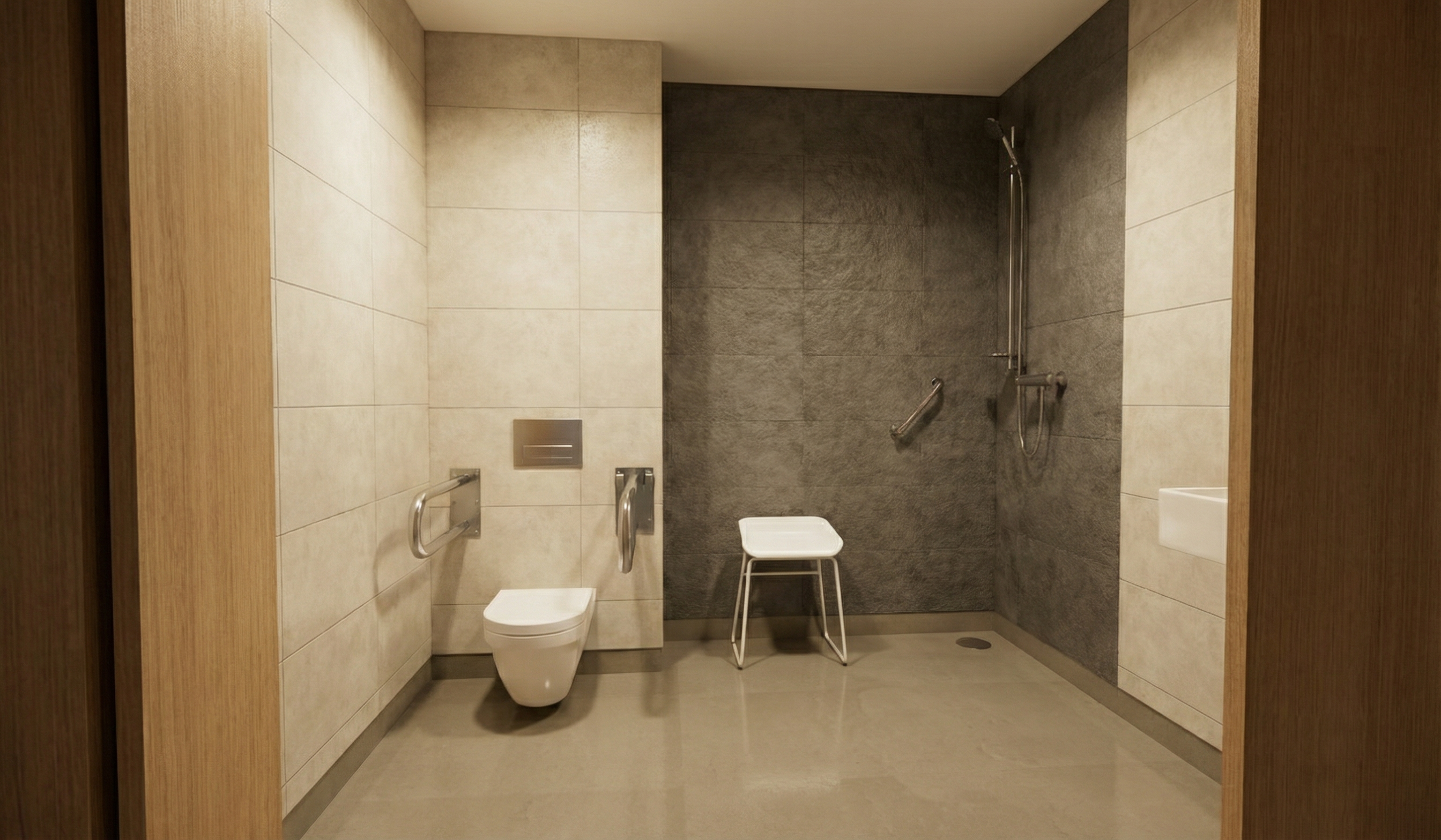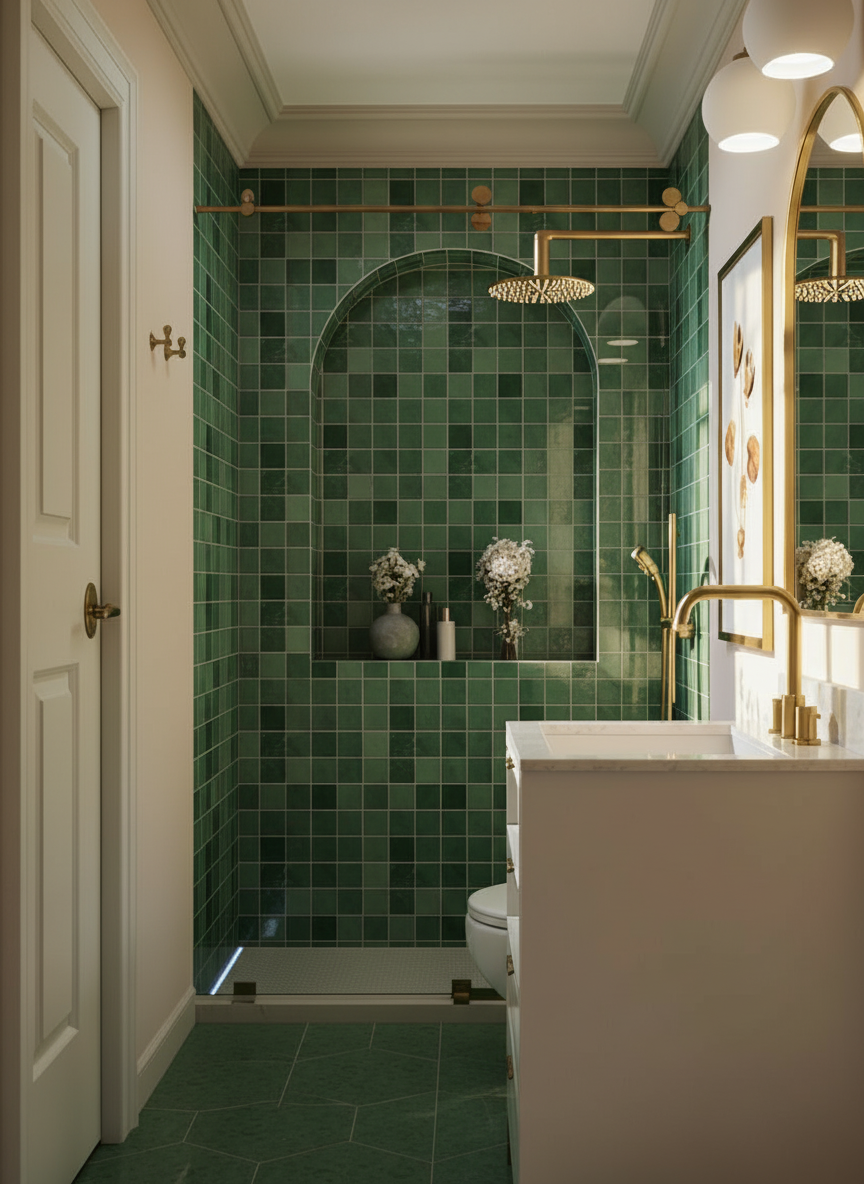 transform the kitchen design by swapping the cabinet materials apply light green painted cabinets the color of the olive tree leave to the lower units and natural wood cabinets to the upper units add a decorative groove to the lower cabinet doors inside the panel keep the design balanced warm and sophisticated avoiding overly ornate or heavy classical elements high quality architectural interior render realistic lighting neutral color palette oak countertop and backsplash realistic aluminum widows painted white and realistic wall material add a minimal white radiator next to the aluminum door add realism and a soft interior light add an old white wall outside the window as a backround