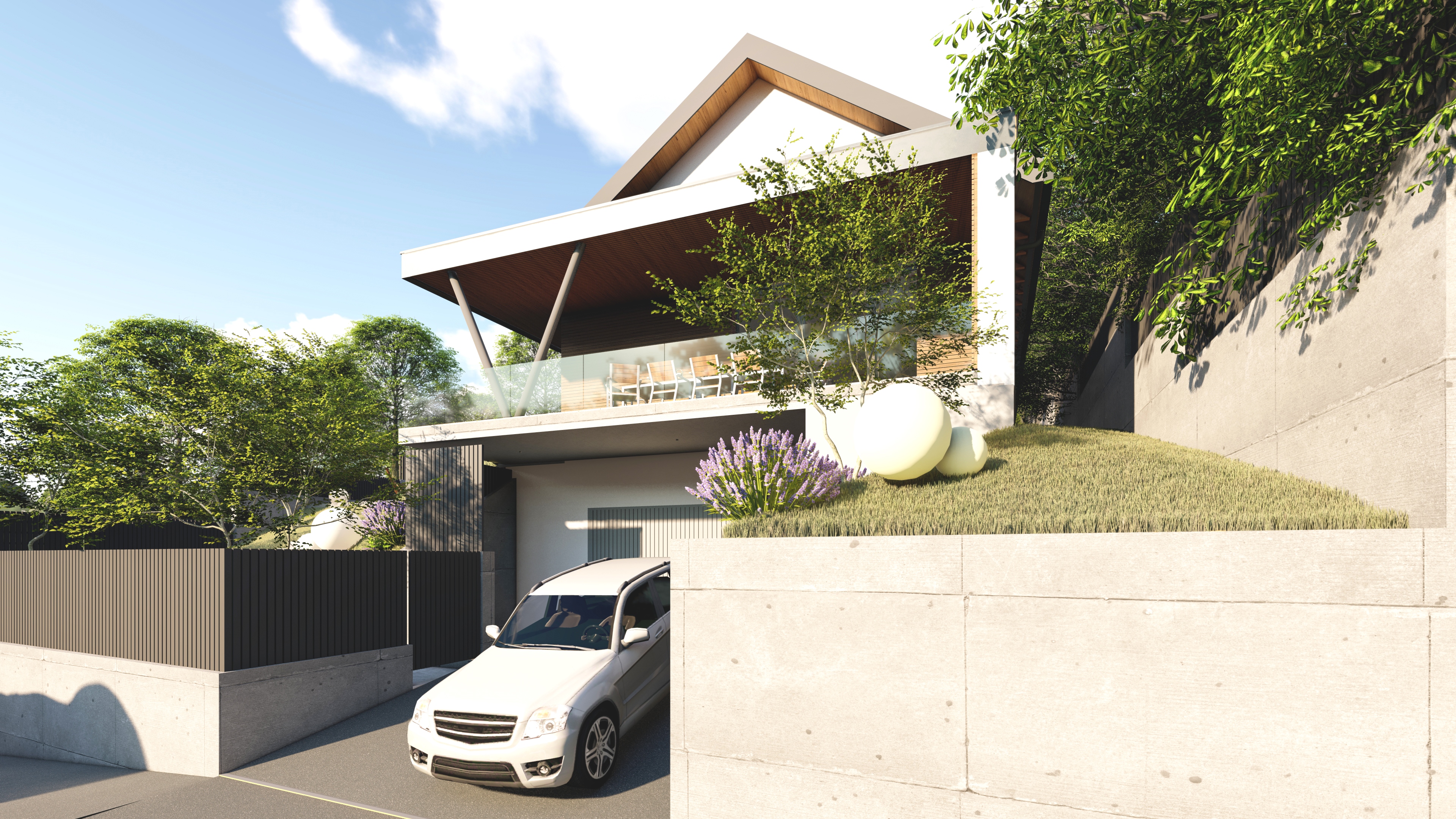 important preserve the existing geometry and the existing context exactly as provided do not modify alter reinterpret add remove scale or reshape any geometry do not change the site surroundings street layout neighboring buildings vegetation or context elements do not modify geometry scale proportions buildings road layout sidewalks or surrounding context in any way do not modify text soft sunnyt noon atmosphere diffused neutral natural daylight with subtle warm tones cinematic architectural mood warm interior lighting 3000k glowing from inside creating strong contrast between cool exterior and warm interior large glass surfaces with realistic reflections soft mirror effect subtle environmental reflections of sky and surroundingsimportant do not add new windows