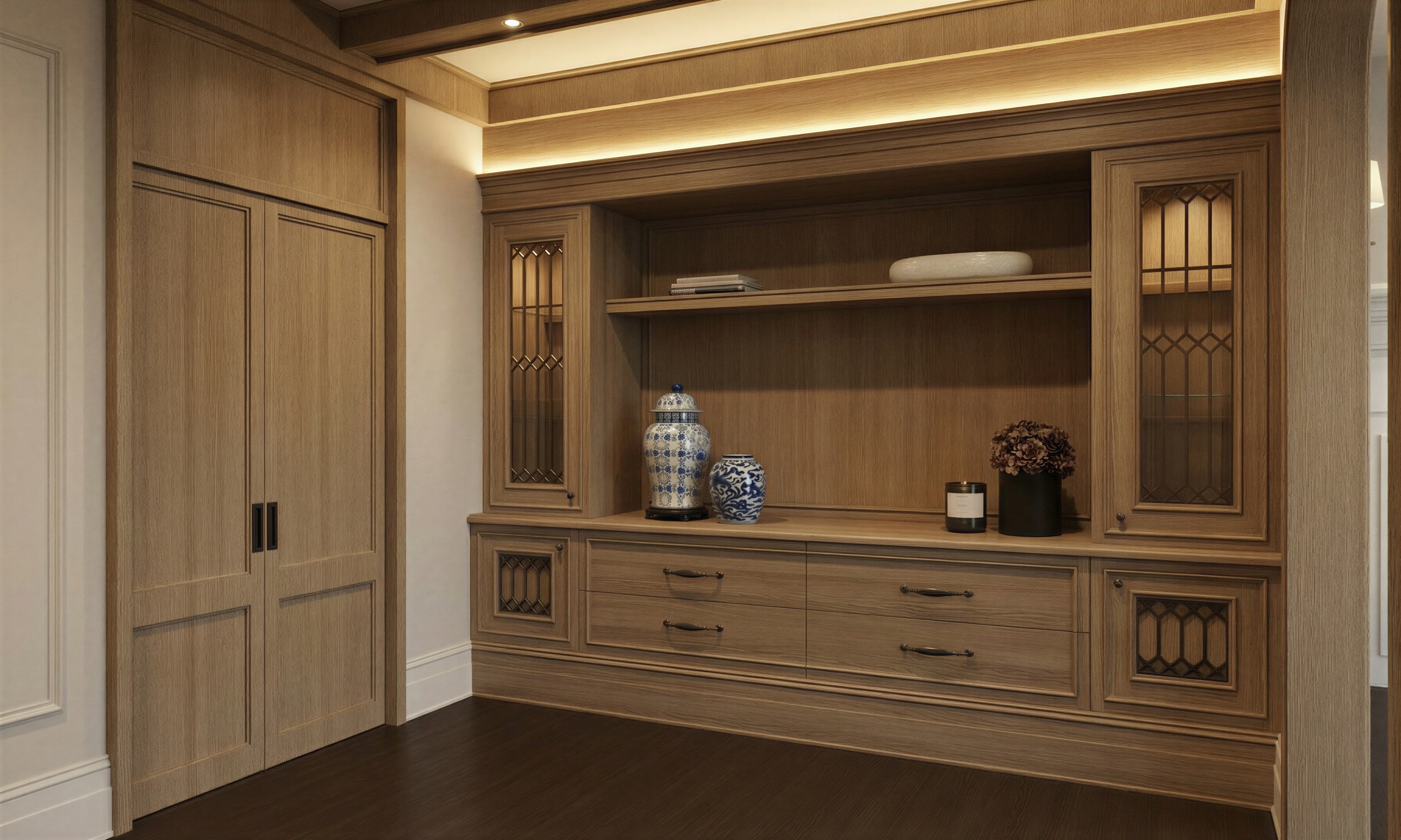 keep everything the same just add some glasses in the two cabinets with glasses also add some glass in the 2 base cabinets
