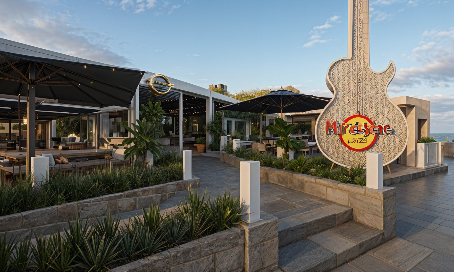 change only the color of umbrellas and furniture upholstery to blue change bar front finish to tiles change bar stools legs to more solid ones