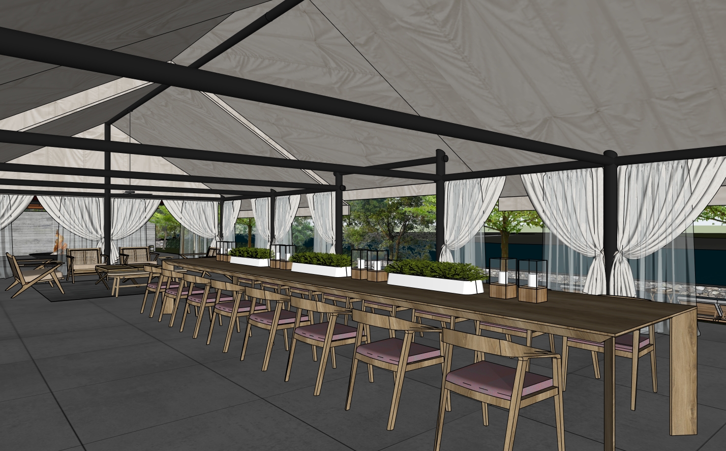 generate a highly photorealistic rendering that matches the mood lighting and atmosphere of the provided reference image important preserve the architecture exactly as shown in the base model image no changes to form proportions structure materials openings or spatial layout do not redesign or reinterpret any architectural elements mood style aman style luxury quiet restrained and deeply atmospheric the scene should feel calm intimate and contemplative not commercial or overly stylized lighting dawn early morning light just after sunrise soft low angle golden light filtering gently through trees long delicate shadows slight cool ambient tones balanced with warm highlights no harsh contrast subtle mist catching light rays is encouraged environment tropical forest no palms dense layered tropical forest with no palm trees use broadleaf canopy trees bamboo ferns moss and undergrowth vegetation should feel immersive but curated not messy or chaotic maintain clear visual priority on the architecture atmosphere slight humidity haze soft morning mist still air quiet almost spiritual calmness the scene should feel like an untouched secluded retreat materiality emphasize natural textures canvas timber stone linen slight weathering and softness materials should react subtly to the dawn light with realistic reflections and shadowing color palette muted earthy tones taupe sand soft greens avoid strong saturation keep everything refined and tonal composition camera eye level or slightly low perspective minimalist framing with balanced composition and some negative space no exaggerated wide angle distortion rendering goal ultra realistic cinematic but understated like a real photograph taken at an aman resort at dawn elegant quiet and emotionally calm no over processing no hdr look no artificial sharpness
