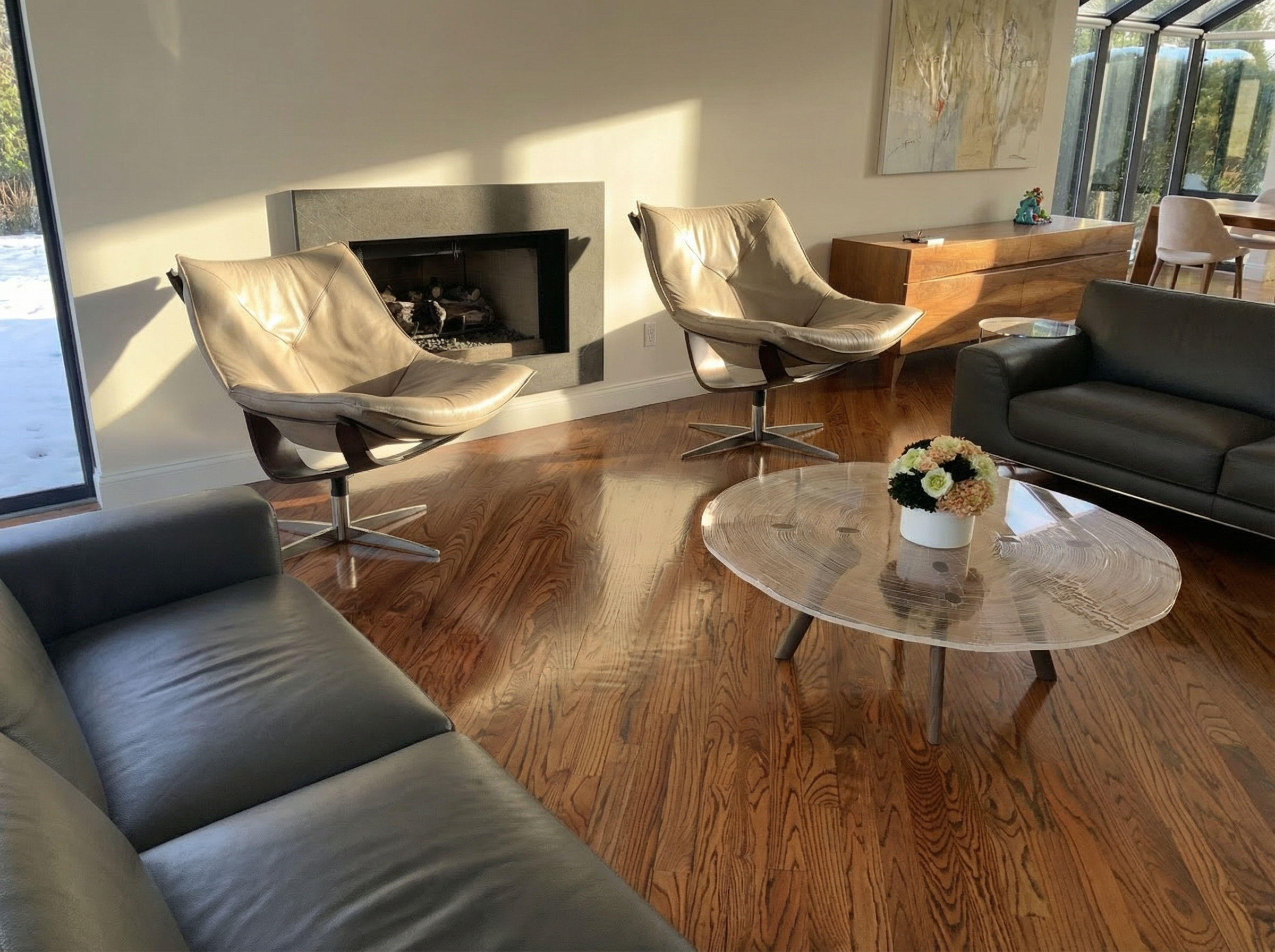 mid century modern architecture with strong influences of googie futurist design and some ecclesiastical modern traits add a driveway under front and right porch add parking in front make clean cut landscaping common to kansas