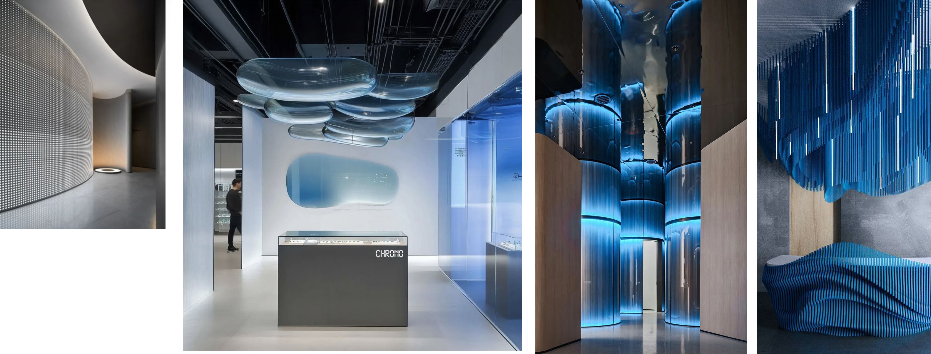 exterior shot enhance the visualization based on the provided mood board concrete flooring metallic walls a sensory installation that encourages touch plush or transparent material add a person admiring the hanging installation