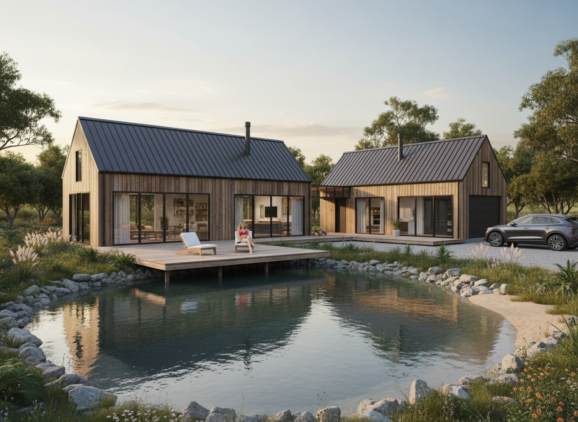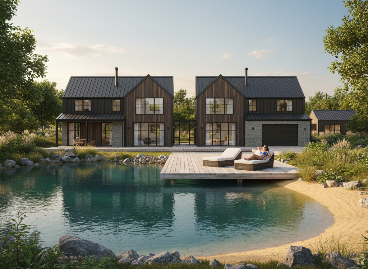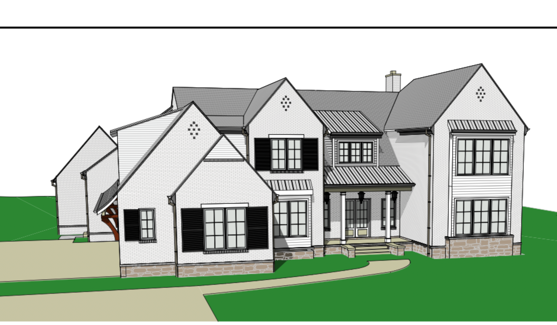 modernist exterior shot gaf weather wood roof with magnolia bay brick by columbus brick robin egg blue shutter trim and siding in ben moore classic gray indiana limestone watertable architecture
