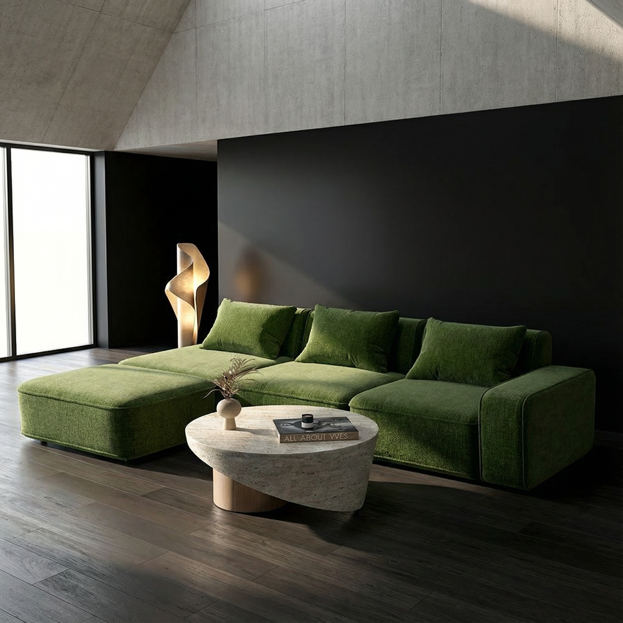 render this headboard bed with this fabric link https www osborneandlittle com trebah velvet f7670 html swatch 9565 remove the tufting details on the headboard