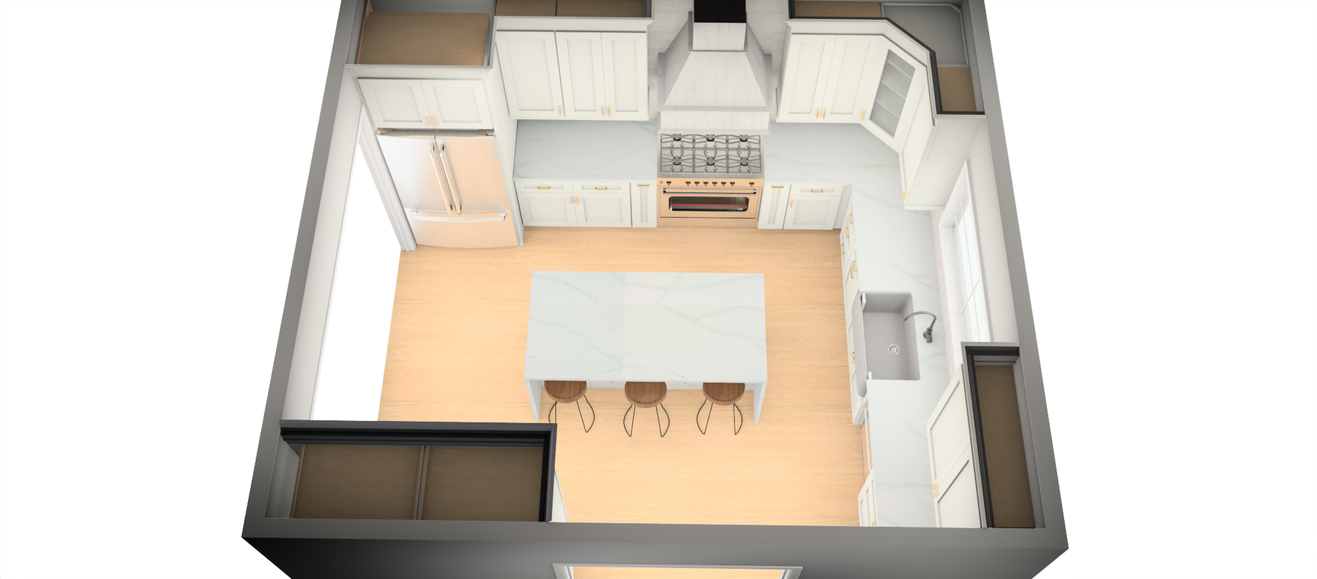 make the kitchen look realistic the open is looking into the dining room window looking into the lake keep the original colors
