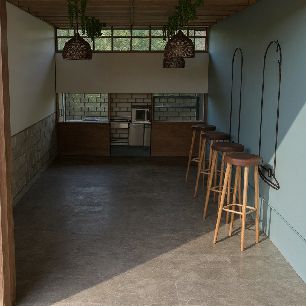 create a 3d rending of a hair salon off of this exact floor plan make all stations look like the second picture
