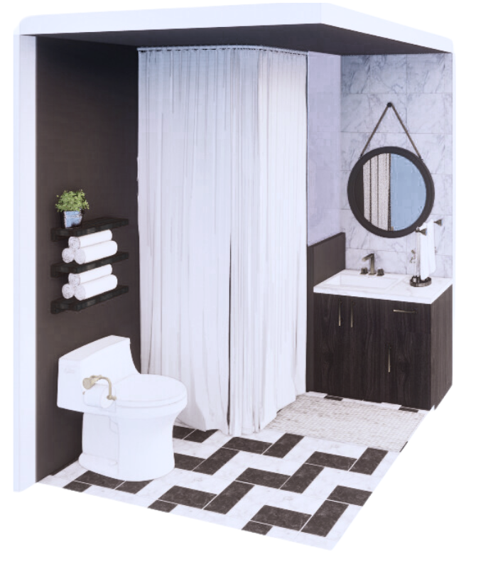 interior shot i want to keep the same materials but in want a view inside of the bathroom i want to be inside of the room