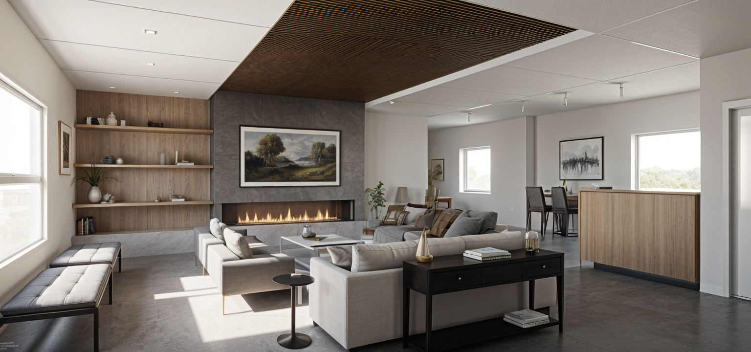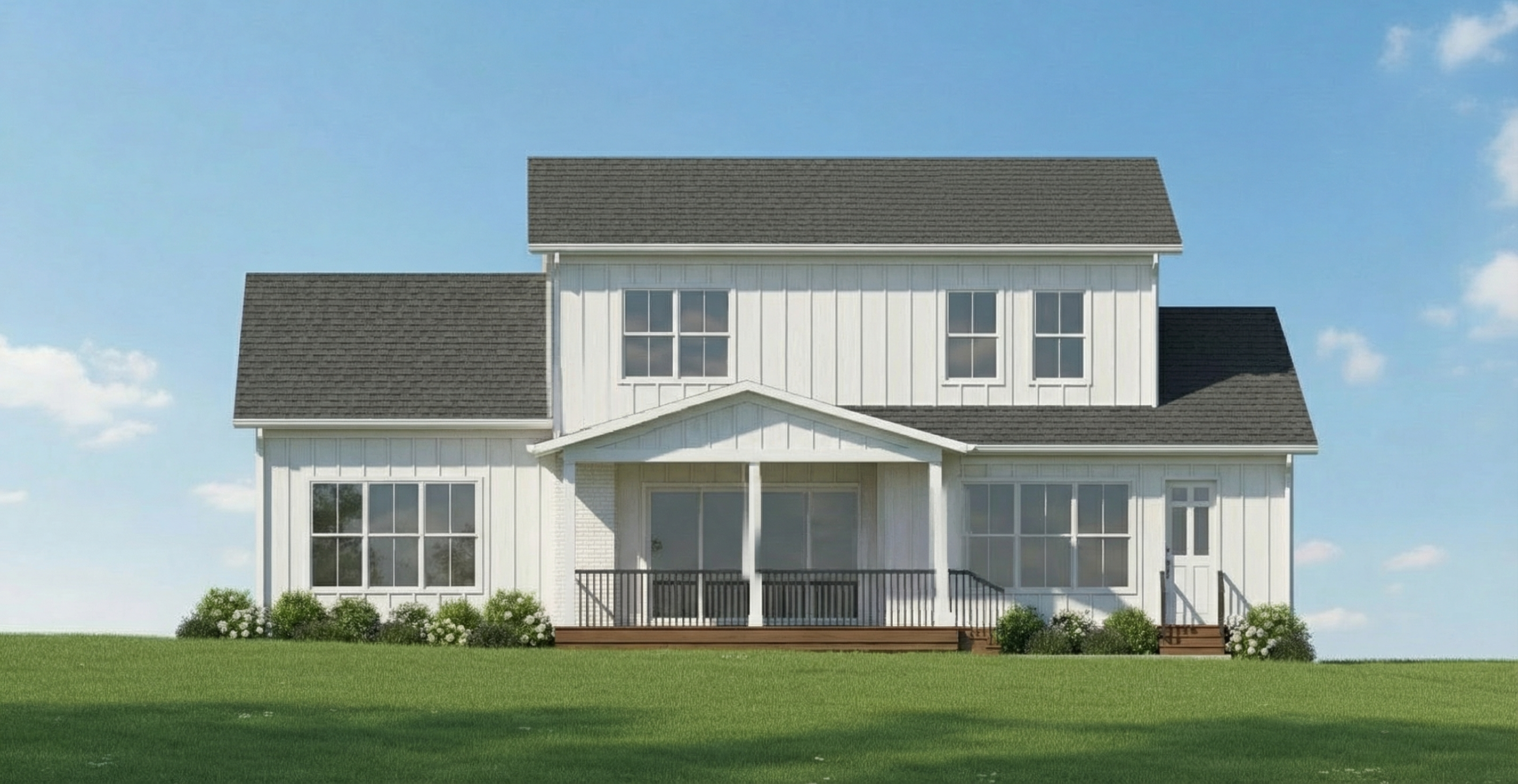 a photorealistic render of a modern style house with clean architectural lines large floor to ceiling windows and anthracite colored window and door frames the house features a minimalist facade with a combination of concrete glass and wood accents surrounded by lush greenery including a well manicured lawn ornamental shrubs and mature trees creating a natural and elegant atmosphere soft natural daylight realistic shadows high detail textures ultra realistic lighting 4k quality architectural visualization professional exterior render
