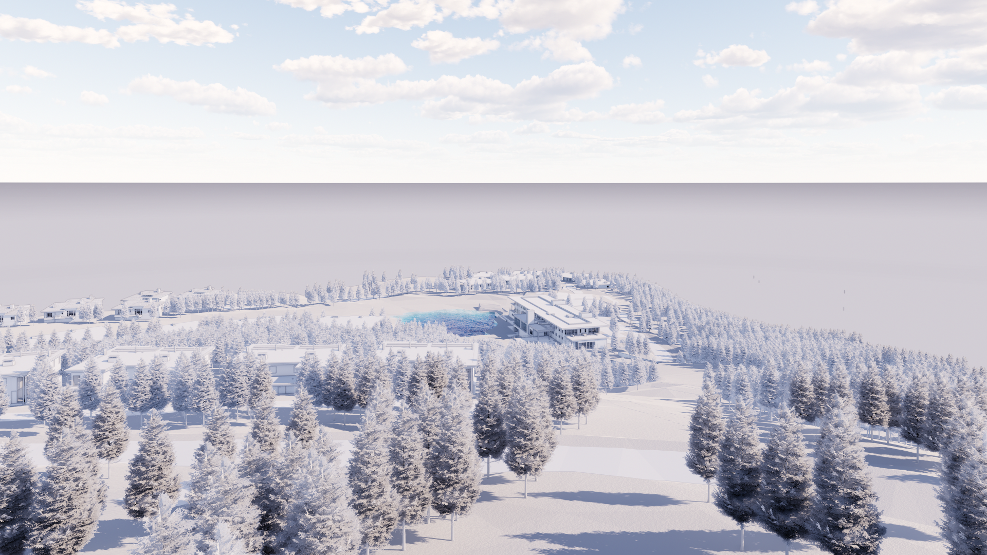 modern exterior shot exterior shot varied light and dark woods mountain modern materials winter scene in dense pine forest preserve grade architecture architecture