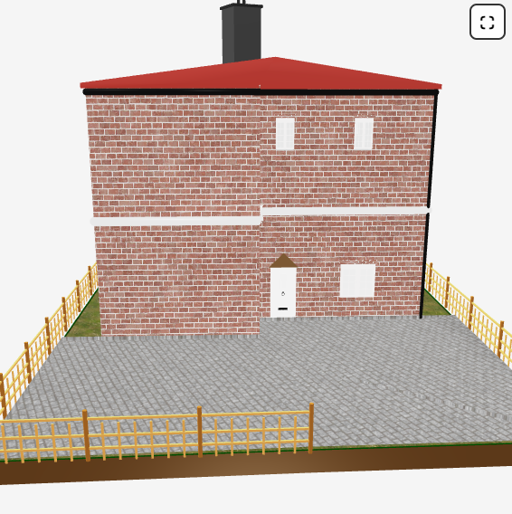 make this 3d model of a house look more realistice it should have a bay window on the ground floor right side and a bay window on the first floor far left side plus two garage doors on the left side