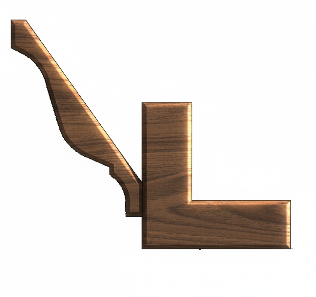 add more natural light to focus in on the crown molding i need to keep the view on the uploaded image make it look like it is painted black make the piece on the left have more of a curve cove and less blocking lines