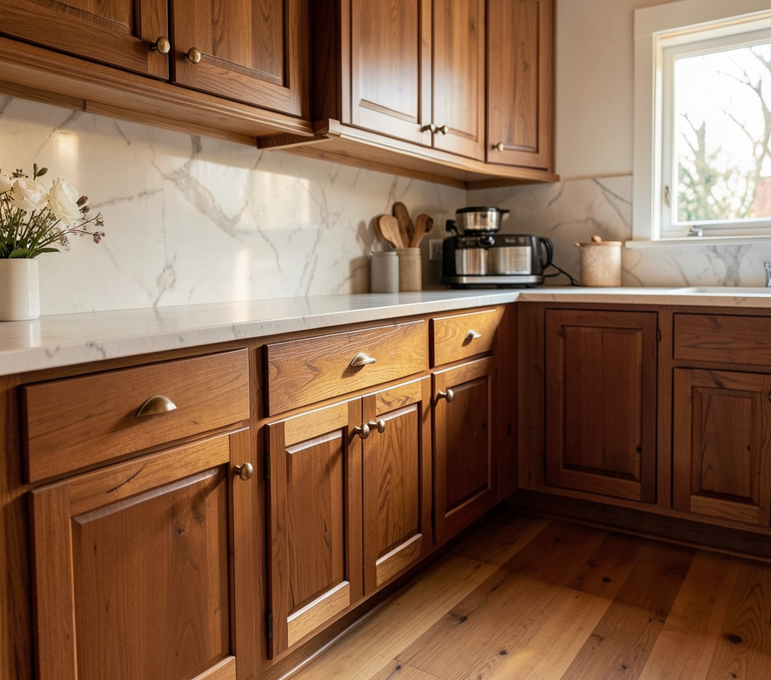 put this cabinet pull in a warm walnut kitchen