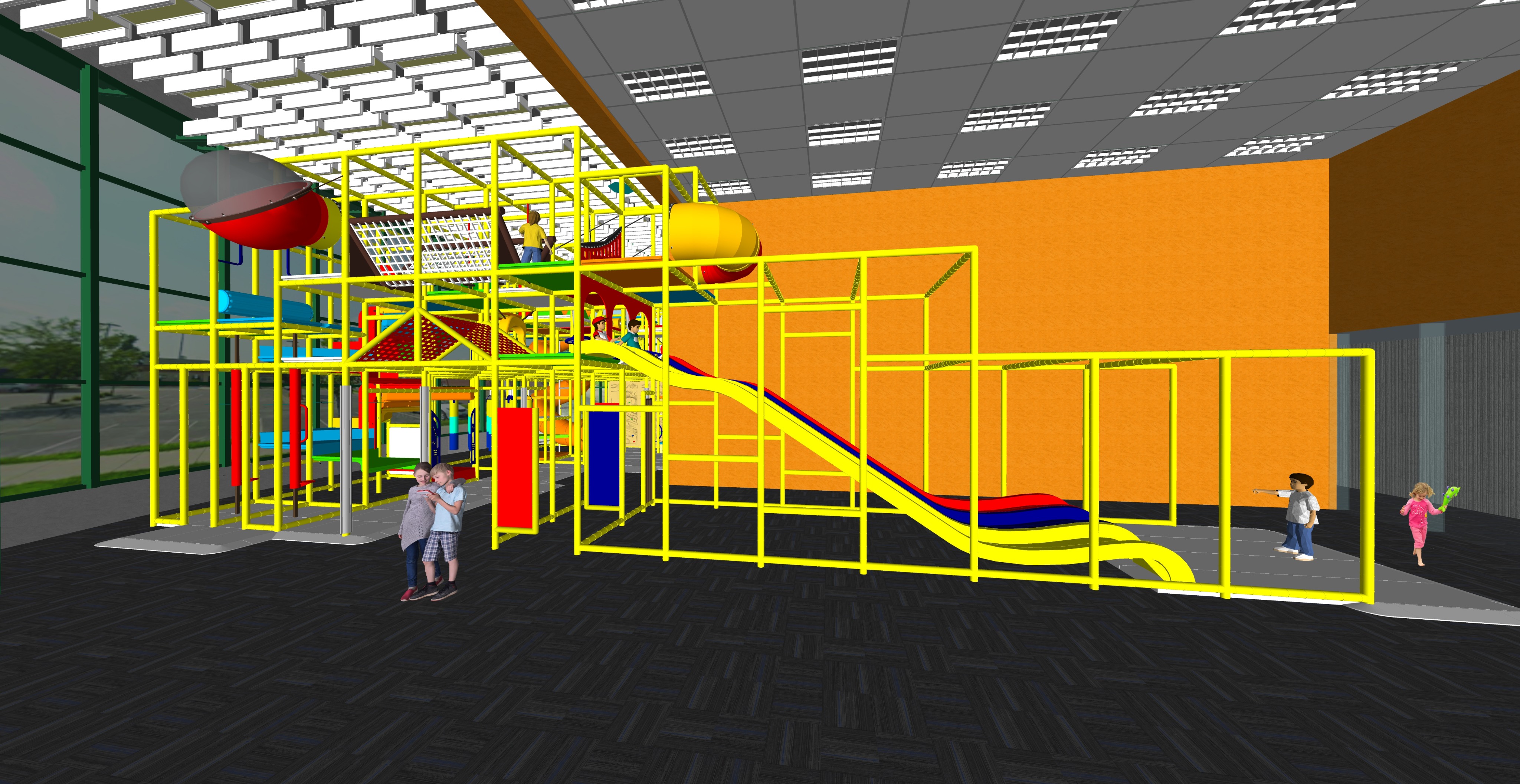 render enhance sky outside left window parking lot brighten room lit hallway with blank wall across outside the right window wall add reflections to right window have lights in ceiling all appear on remove can lights and circles in ceiling