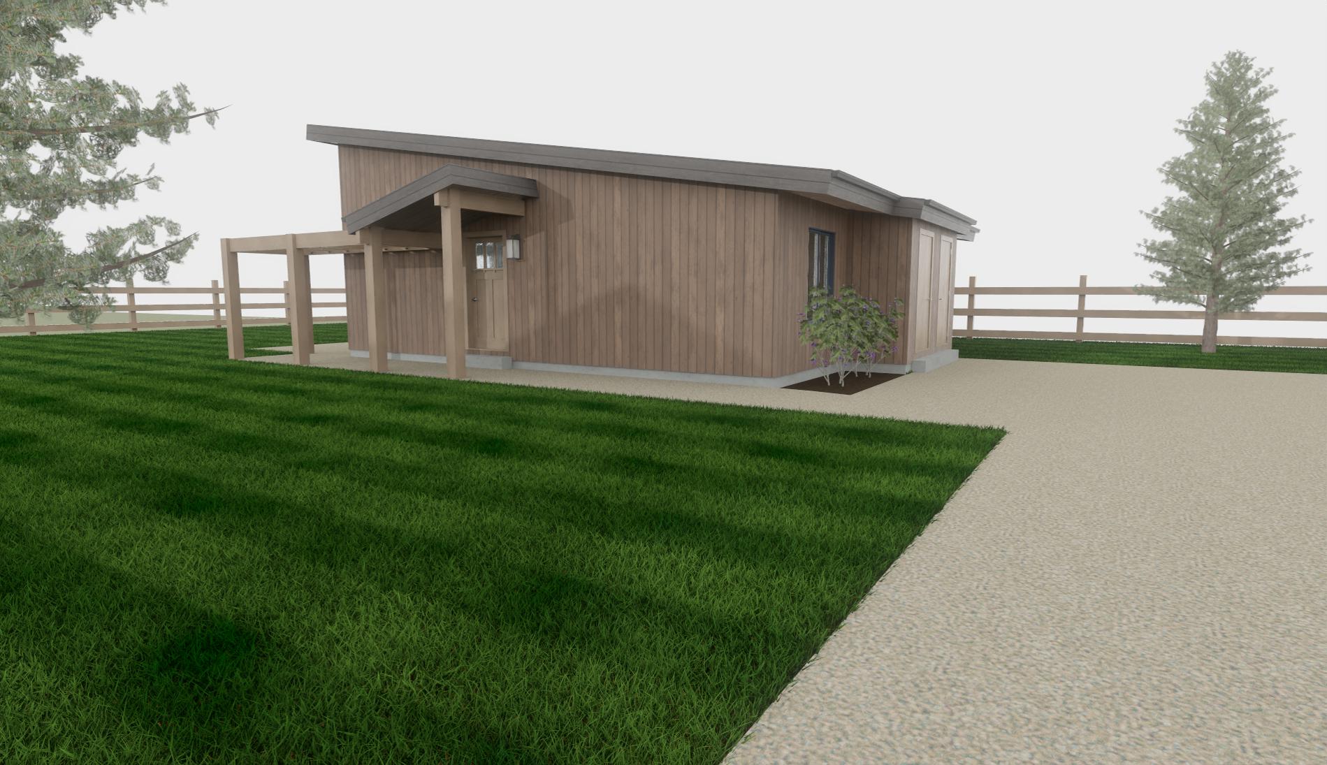 make this moody a little fog in the background rustic landscape with pine trees aspen trees and soft shadows for depth 4k resolution keep the same design details for the cabin and timbers