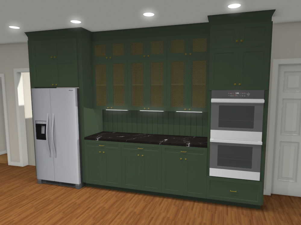 the back splash should be vertical panels that color match the cabinets the panels on the wall cabinet should be brass wiring