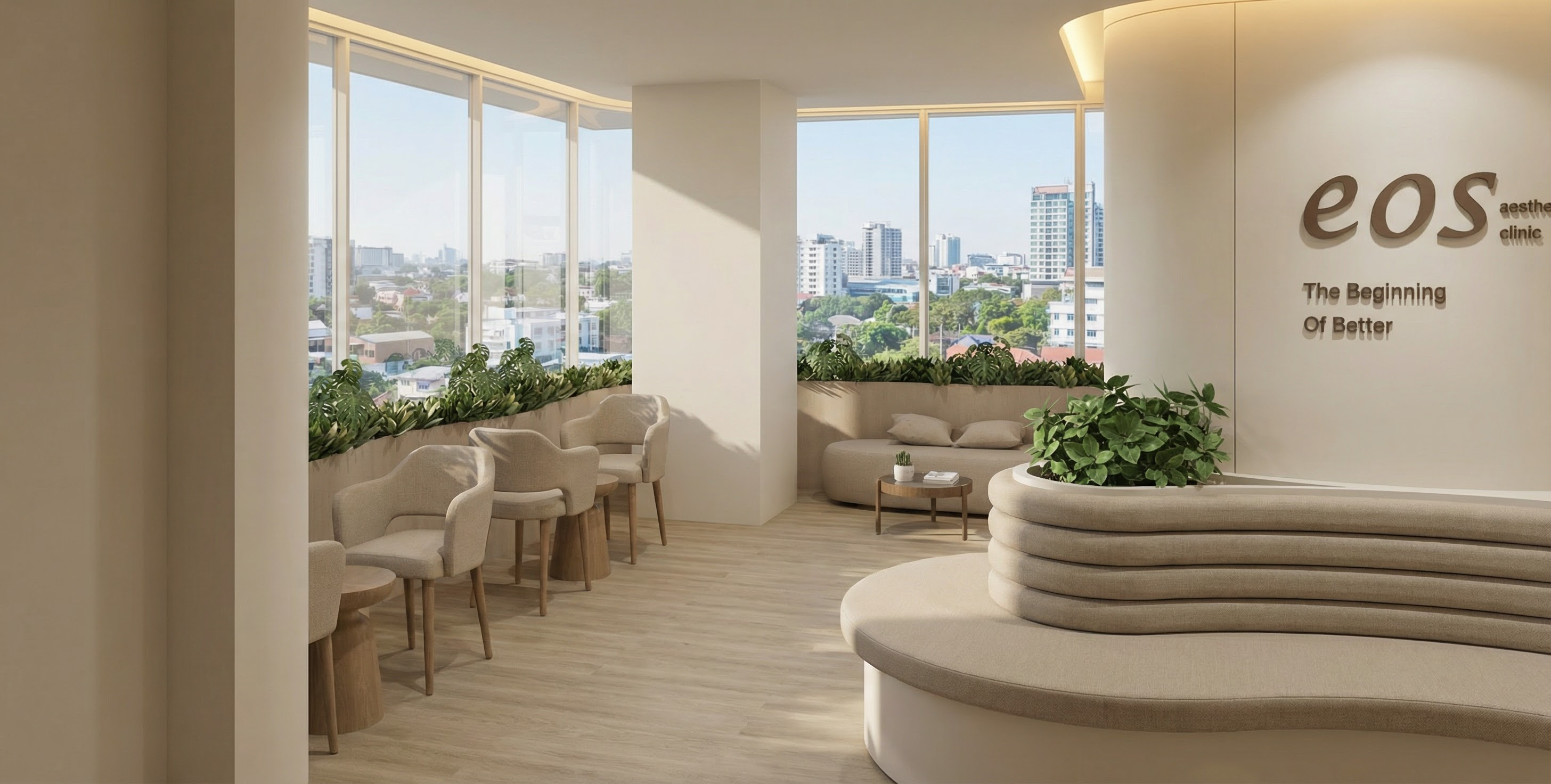 important preserve the existing geometry and the existing context and content exactly as provided apart from the exceptions listed do not modify alter reinterpret add remove scale or reshape any geometry do not change the site surroundings street layout neighboring buildings vegetation or context elements do not modify geometry scale proportions buildings road layout sidewalks or surrounding context in any way do not change text photorealistic architectural rendering clean and balanced contrast calm cinematic mood style contemporary european residential architecture minimalist premium understated color soft sun noon atmosphere diffused natural daylight with subtle blue grey tones cinematic architectural mood large glass surfaces with realistic reflections soft mirror effect subtle environmental reflections of sky and surroundings soft light bounce and blurred reflections high dynamic range lighting realistic global illumination soft shadows calm and minimalist nordic mood photorealistic architectural visualization balanced exposure no harsh highlights scottish highlands setting against a hill and trees boathouse building second from left has metal sinusoidal pitched roof with larch boarding vertical timber two vertical timber double doors do not add windows small building second from left has no window red sandstone finish building on far left is white but extension on its right side is black building at far right is red sandstone