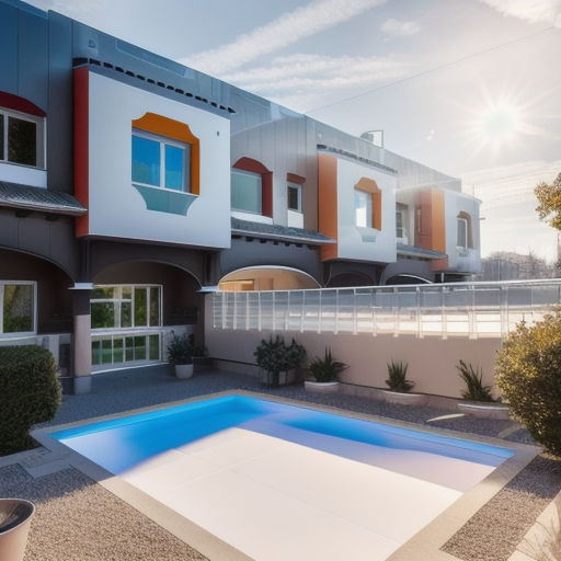 luxury modern french home with french doors on left wall leading to a terrace with a view la hills and right foyer sofa table behind each sofa with floor lamp on each side have all lights glowing on scale furniture