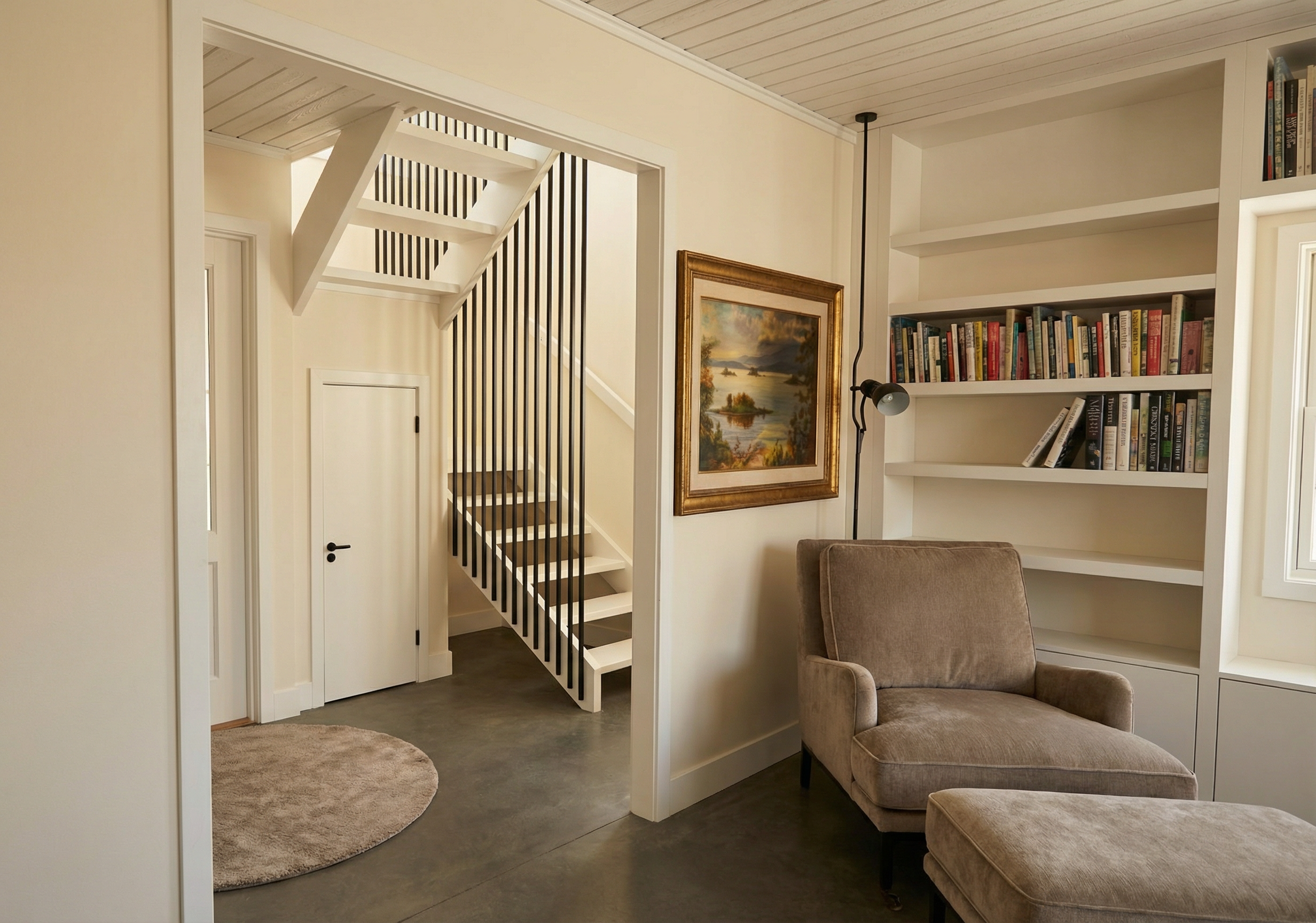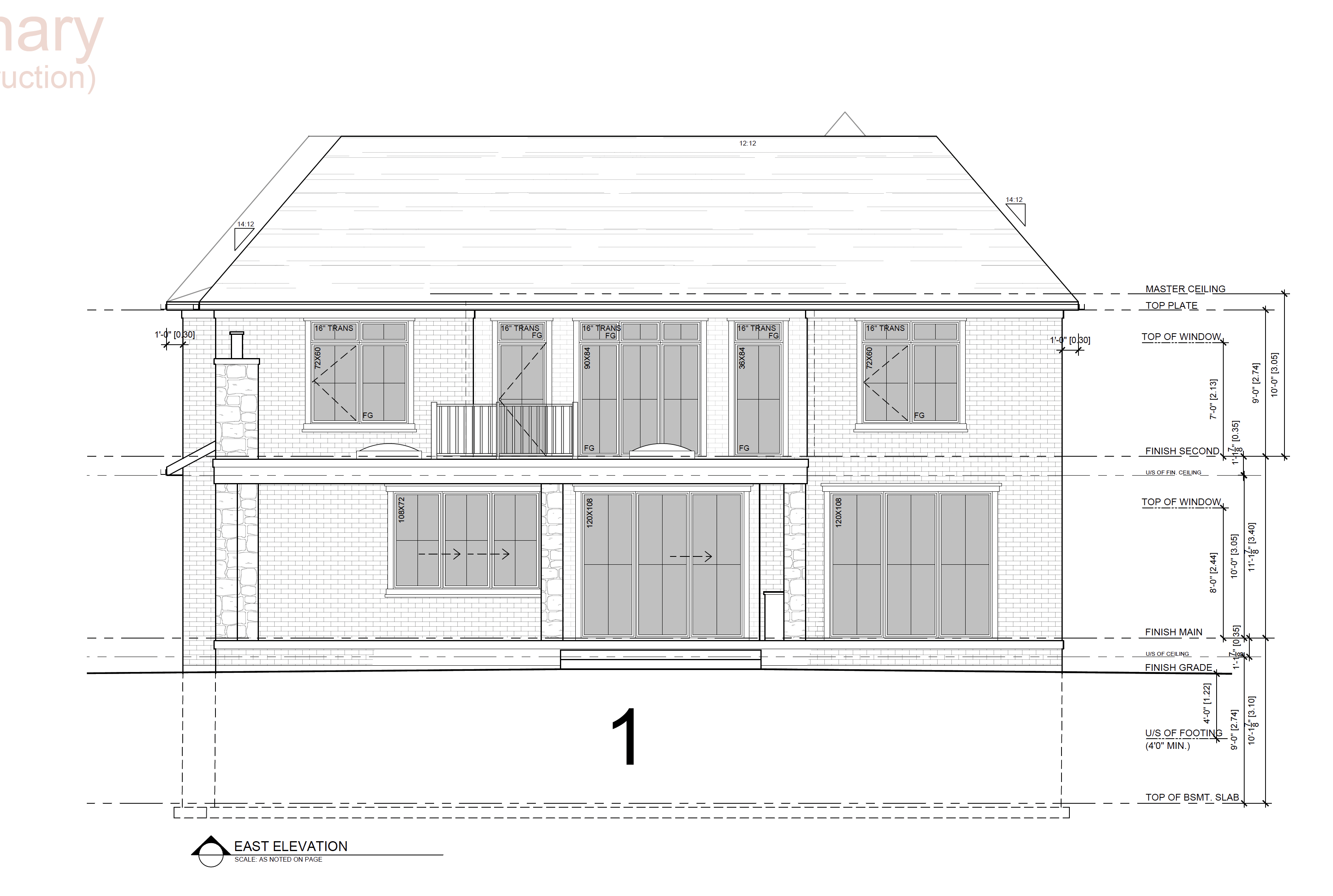 create a rendwring of this rear elevation using grey stone and brick