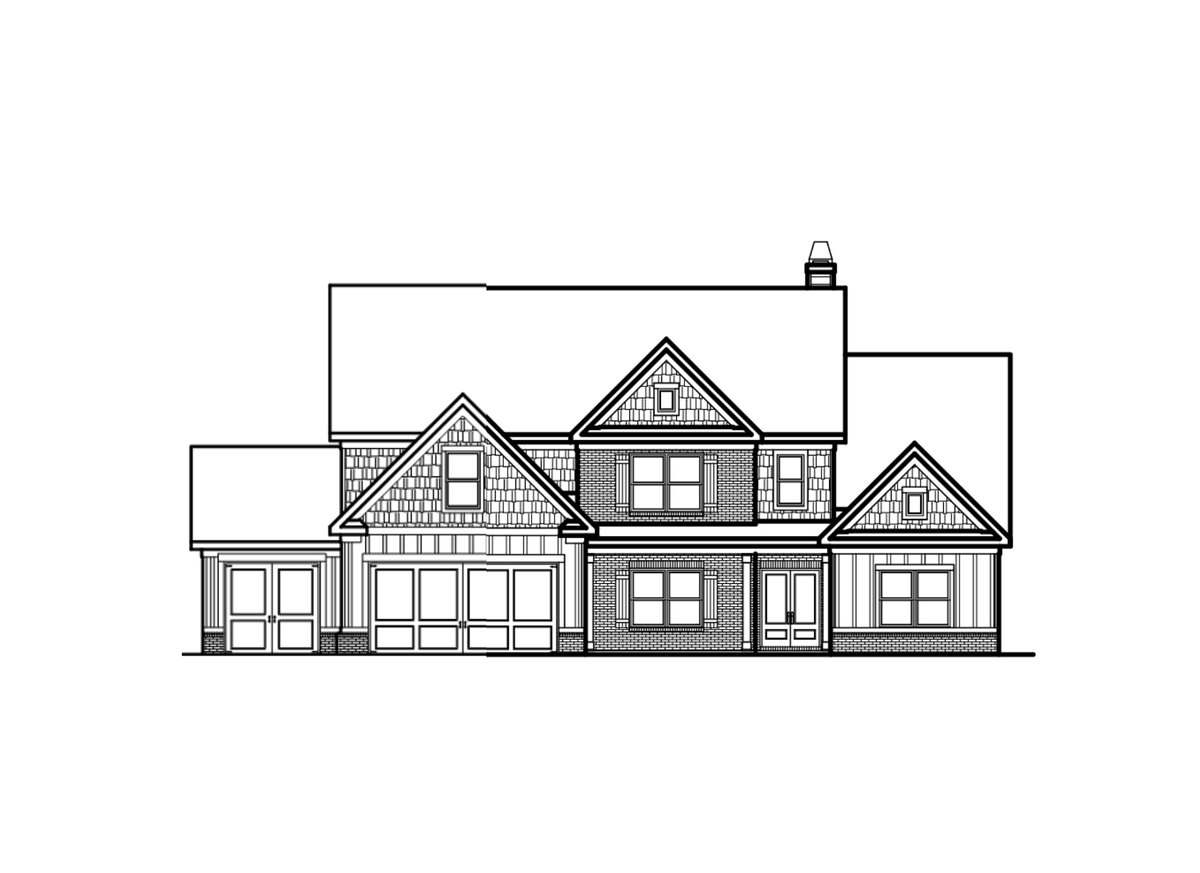 dark cream colors dark brown roof medium color brick trees behind minimal landscaping in front add driveway