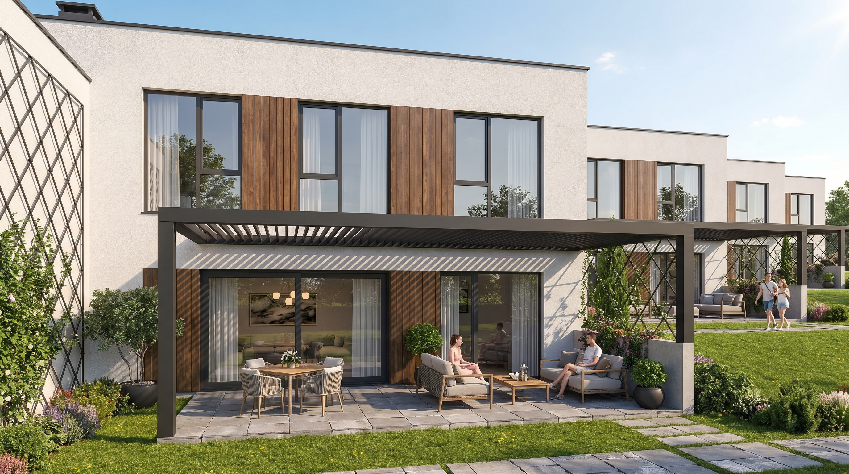 change wood between the windows with the corten material from the reference image keep everything unchanged don t change any geometry don t change other materials