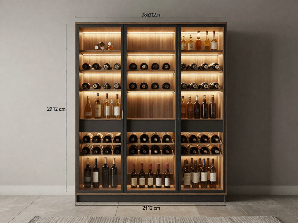 remove the measurements the bottom shelf above the full length wines should have a single row and a visibly more inclined shelf appearance