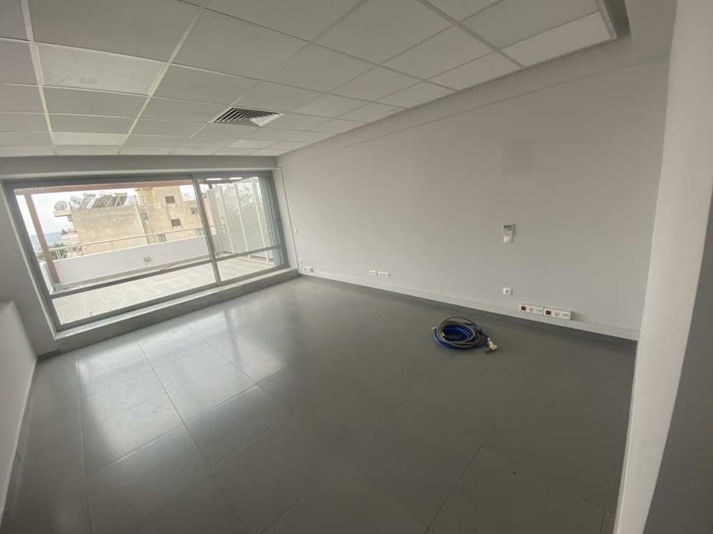 design a high end modern interior office for a renovation and construction company the space is a rectangular room with large floor to ceiling windows on one side providing natural light the floor is dark grey tile and the walls are clean white the layout includes two zones within the same room meeting area position a large rectangular executive meeting table parallel to the window keep the table design unchanged thick monolithic form with a concrete or stone like dark grey finish surround it with 6 8 premium swivel chairs in burnt orange or cognac upholstery with black bases the chairs should feel minimalist architectural and sculptural adding a strong visual wow effect private workstation area important custom desk design on the right side of the room create a one person office desk inspired by the following description a modern desk that combines two materials a warm natural wood top main working surface slim and clean a side volume block in dark marble or stone acting as support storage element the desk should feel asymmetrical and architectural not a standard office desk one side of the desk can extend slightly as a floating wooden slab the marble stone volume should be solid rectangular and grounded behind or around the desk include built in minimal storage or clean cabinetry keep styling minimal monitor a few papers small plant and clean accessories pair the desk with a high end ergonomic chair in cognac leather executive style design style modern minimalist architectural with a luxury construction office identity avoid clutter materials palette dark grey stone concrete meeting table natural wood desk surface dark marble or stone desk base element black metal accents cognac burnt orange leather chairs neutral tones white grey lighting clean recessed ceiling lights optional linear lighting or indirect lighting for a premium feel additional elements one large plant near the window keep walls mostly clean no green wall optional subtle texture like microcement or very light wood detailing the space should feel premium warm and professional impressive for clients while maintaining a strong architectural identity focus on clean geometry material contrast and balance between the meeting zone and the private desk area