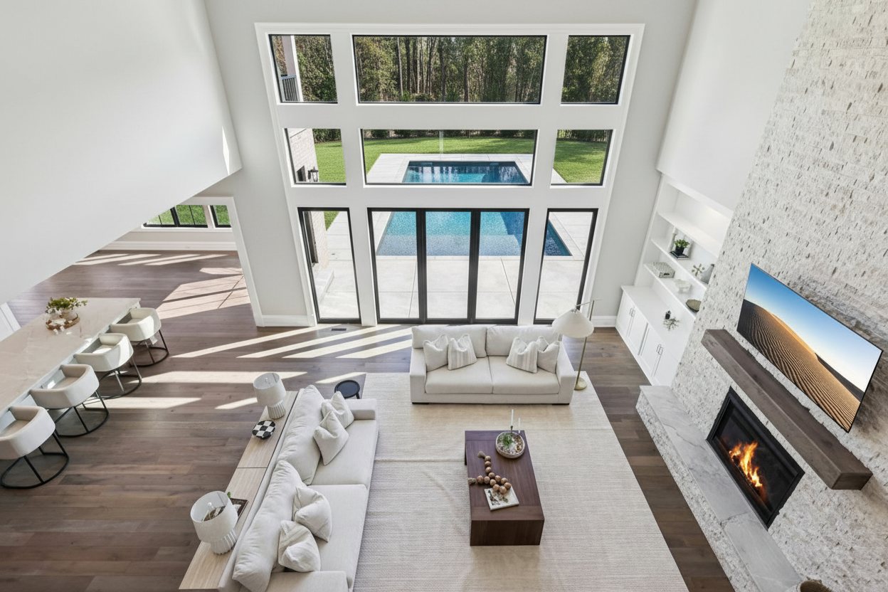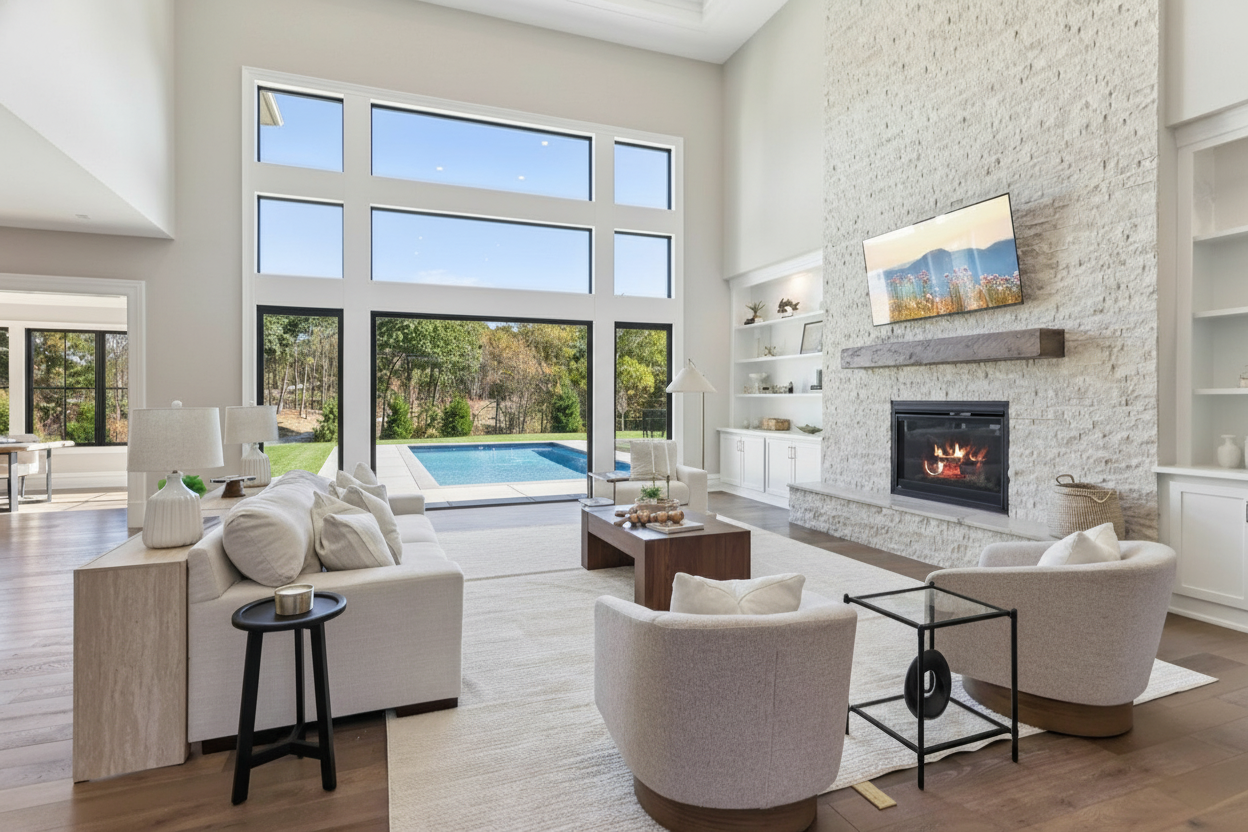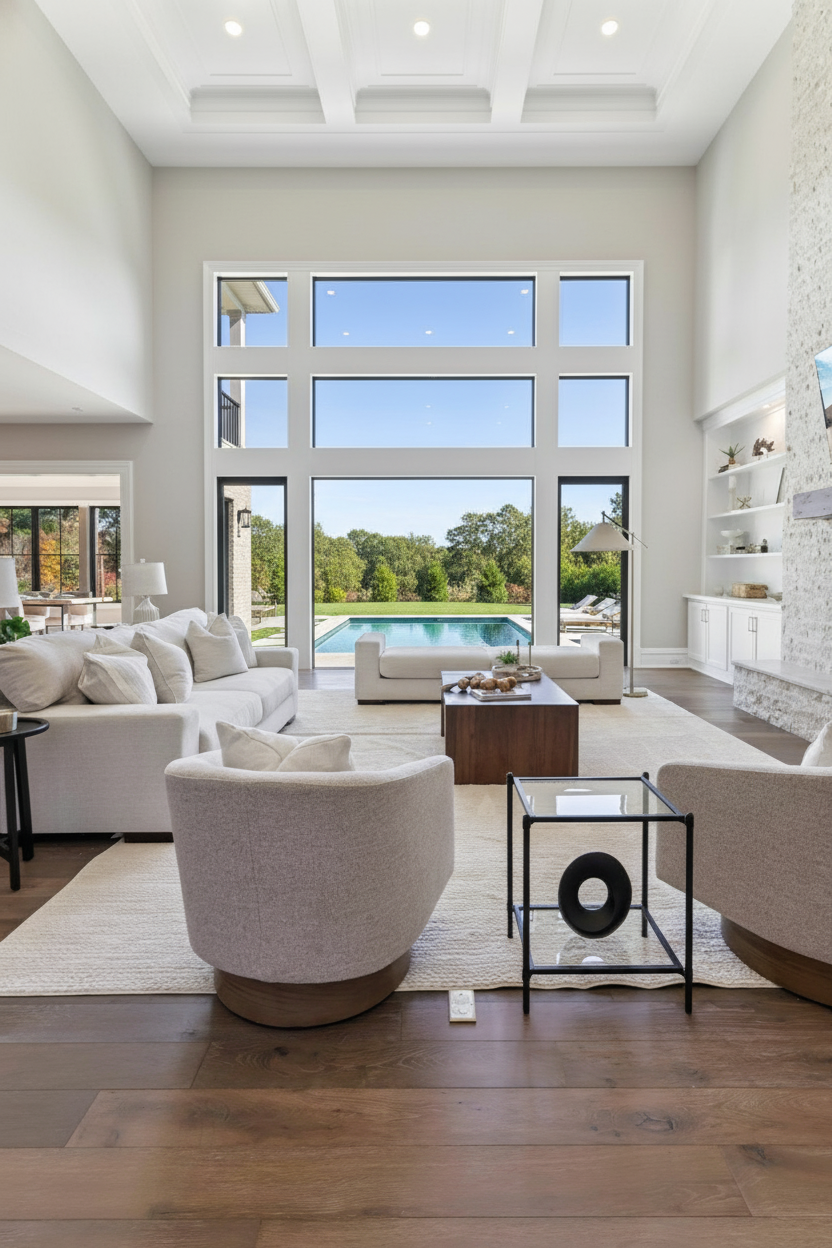 make it look like theres a pool in the back part of the backyard dont change anything about the windows or the furniture