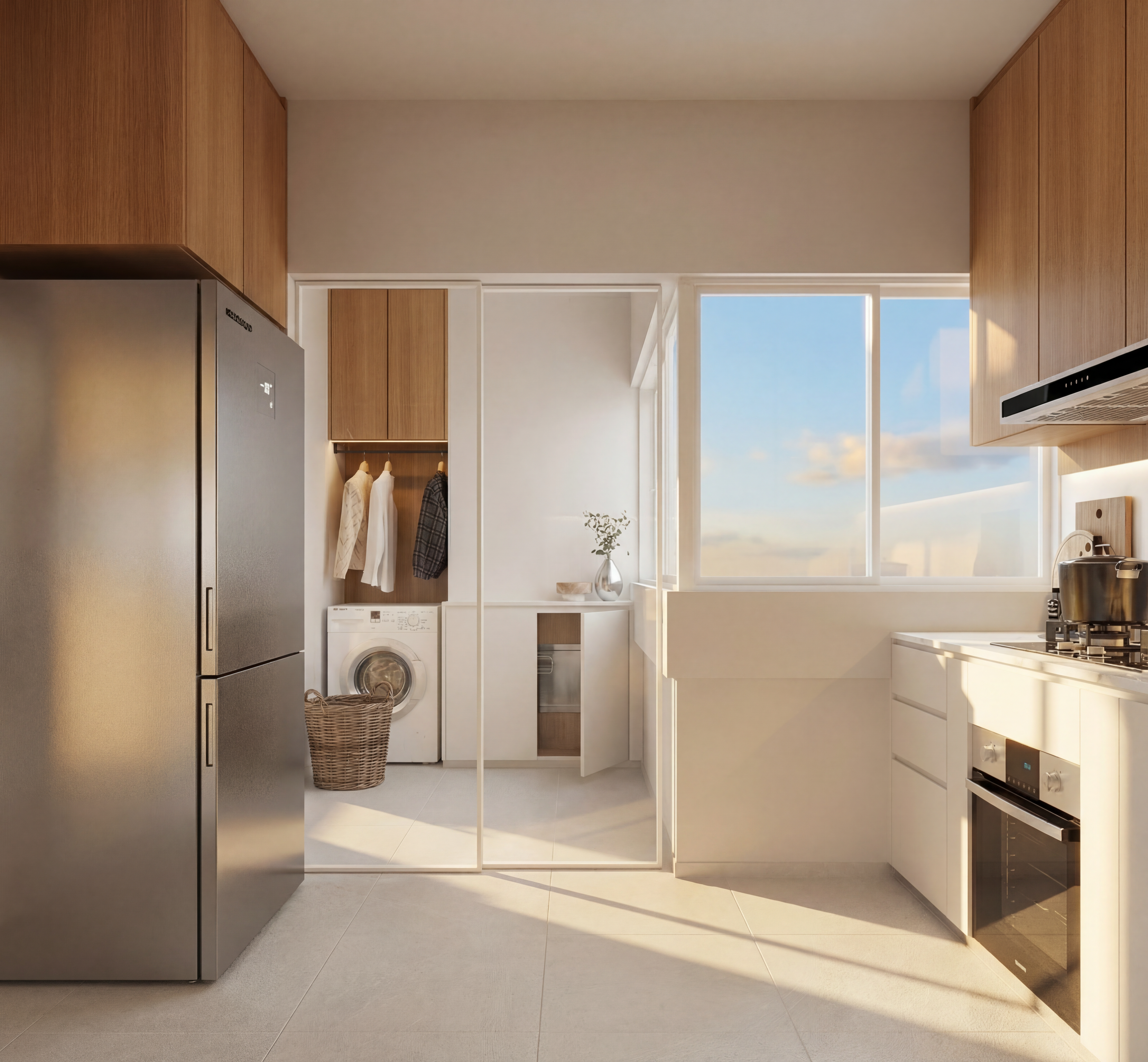 convert this floor plan into a realistic isometric 3d view of a full house show the space from an elevated angle with furniture walls and details visible minimalist decor scandinavian style flooring in wood sofa beige bedding in white and beige use the same furniture as shows on the plan do not change the orientation of the floorplan