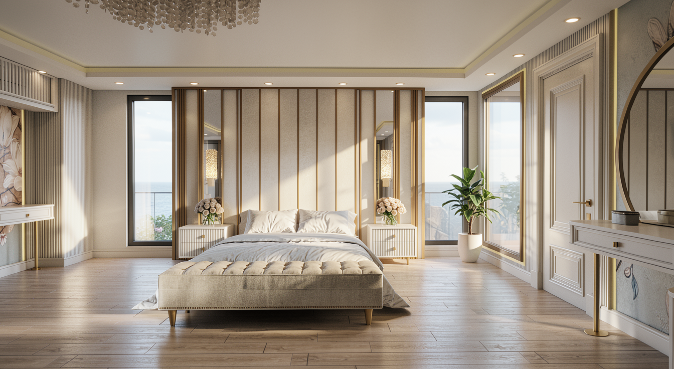 contemporary spanish style home beige rectangular travertino on walls stucco on columns and roof eave white oak solid doors black metals glass doors and windows brown blend slate roof