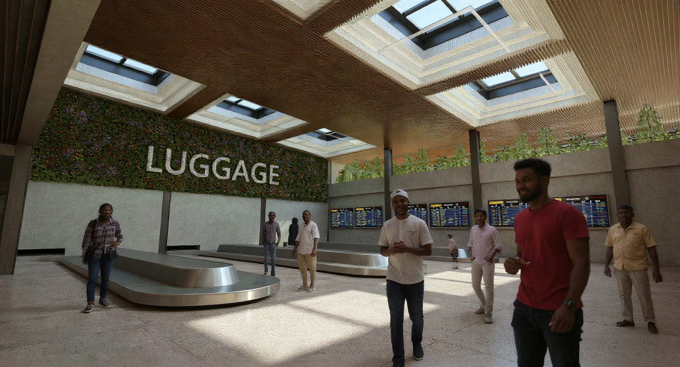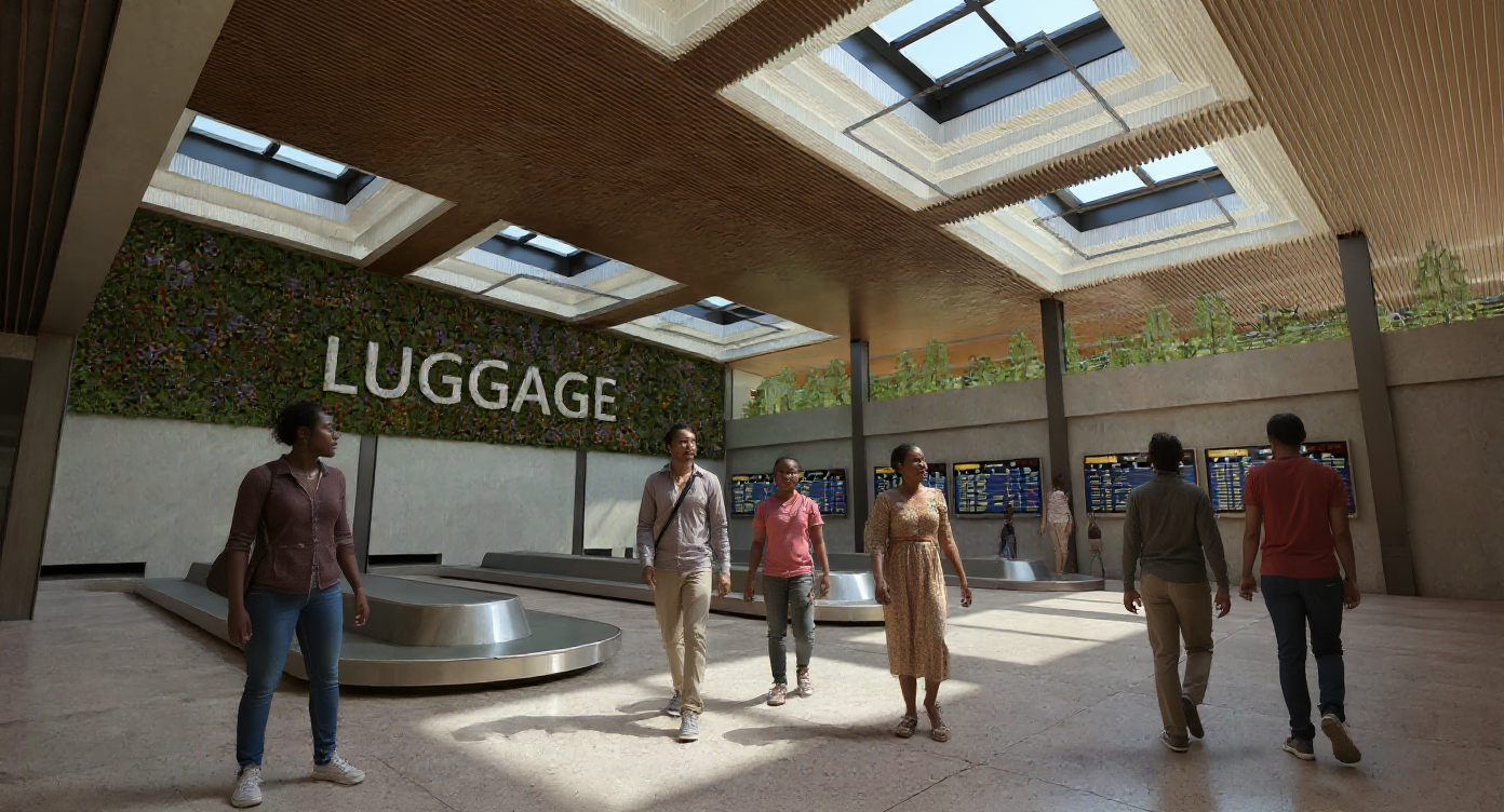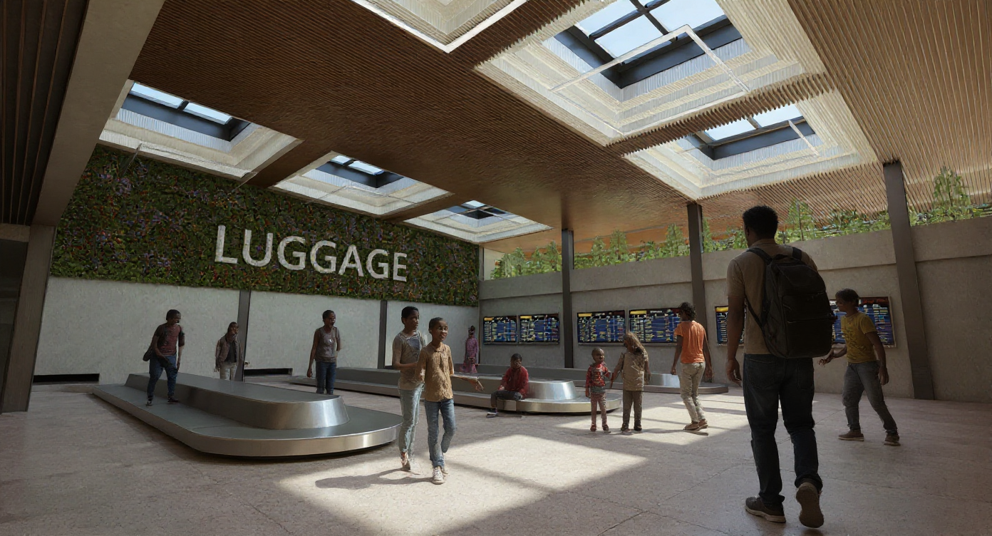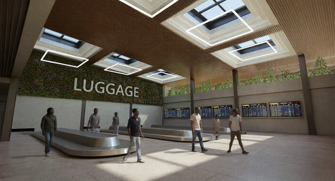 noveyor belts with suitcases wood ceiling concrete waals