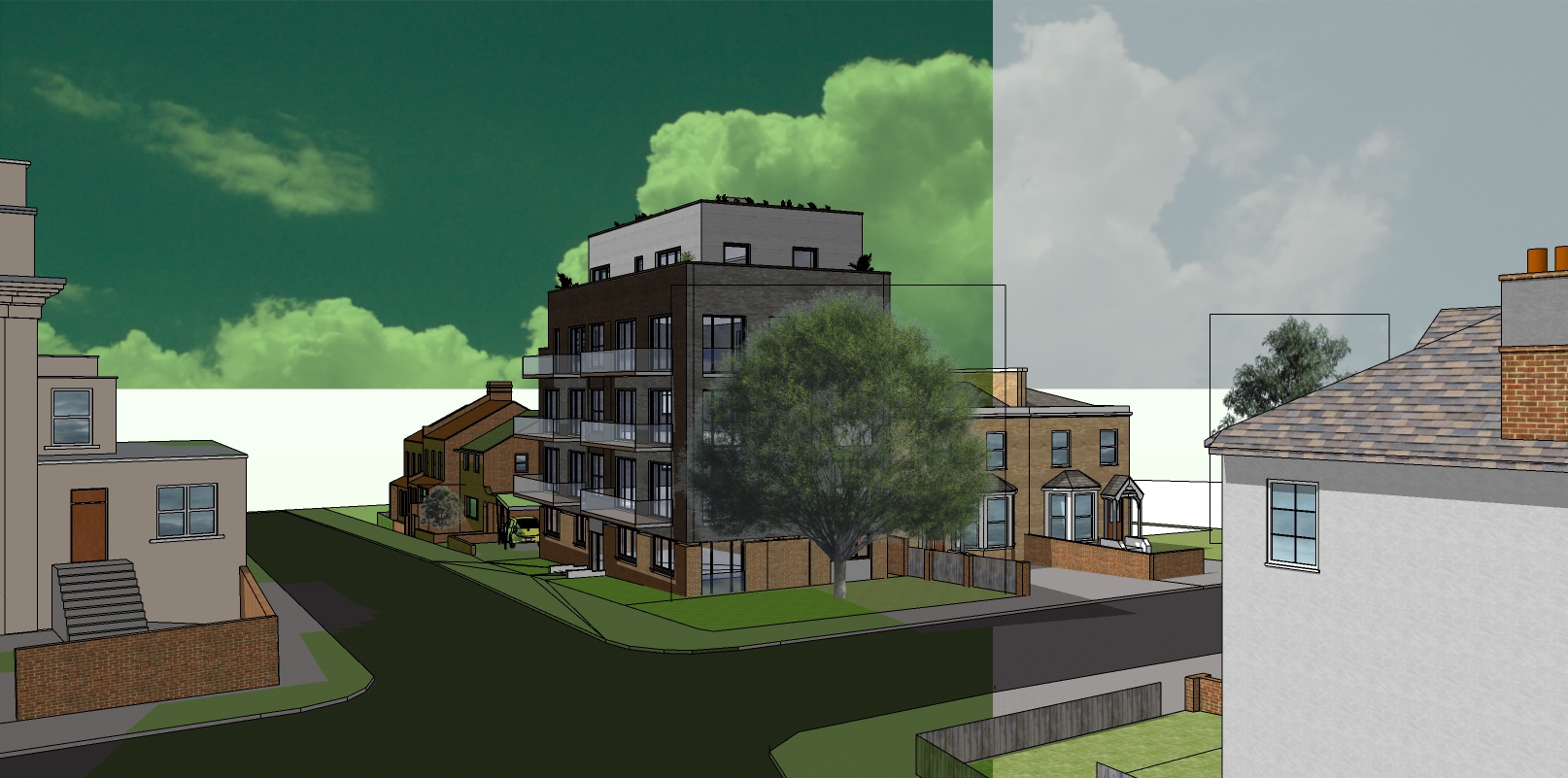 add people and cars and blue sky
