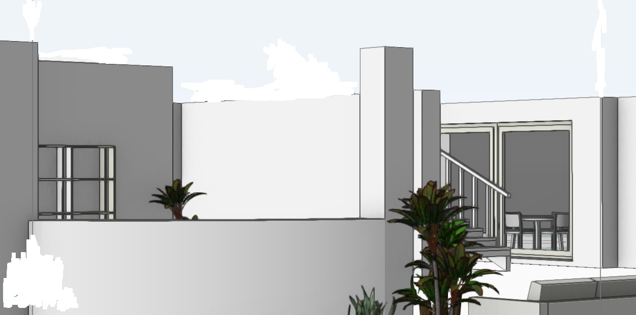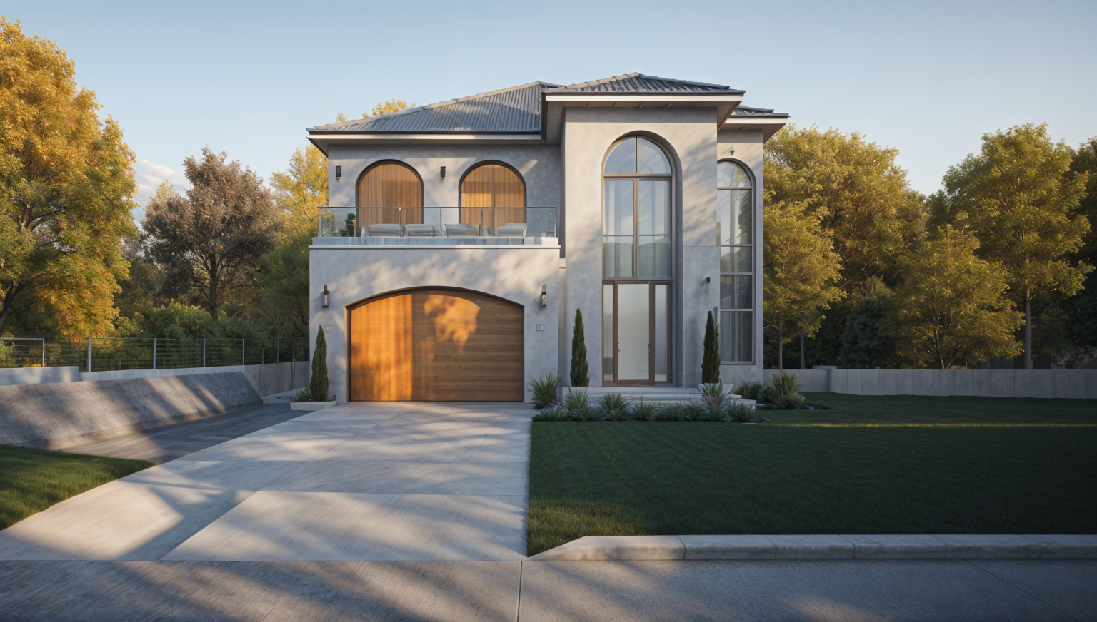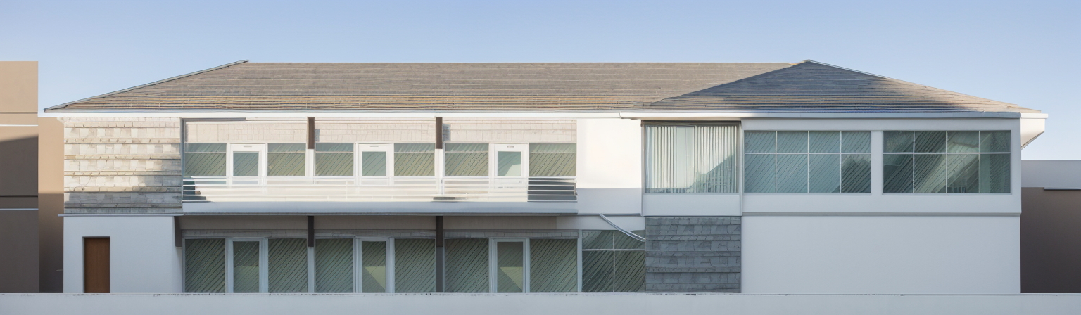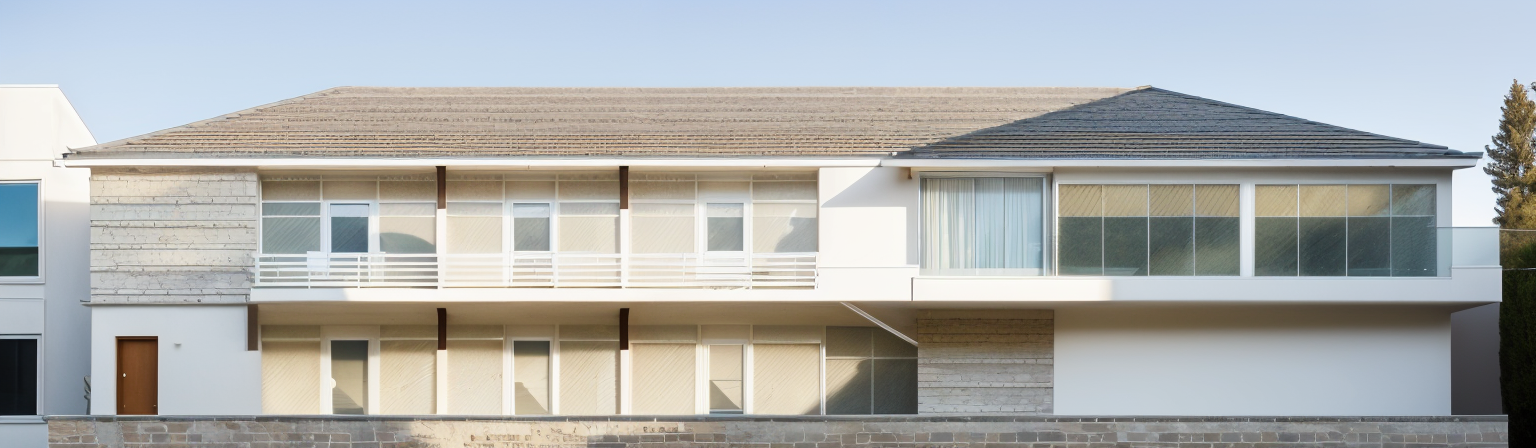 futurism interior shot modern architectural design featuring sleek minimalistic structures design includes smooth white and light gray walls highlighted by large transparent glass windows the setting is adorned with lush vibrant green plants in the foreground adding a touch of nature the sky is a clear pale blue conveying a serene and peaceful ambiance capture the atmosphere with soft natural lighting emphasizing the elegance and tranquility of modern living architecture