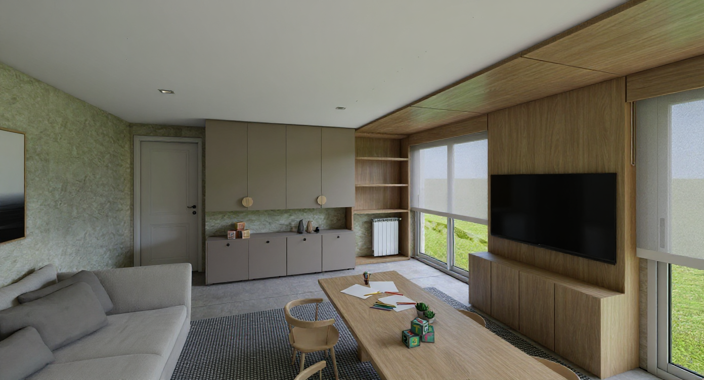 interior from the top 3d rendering isometric from top with soft neutral and beige colors