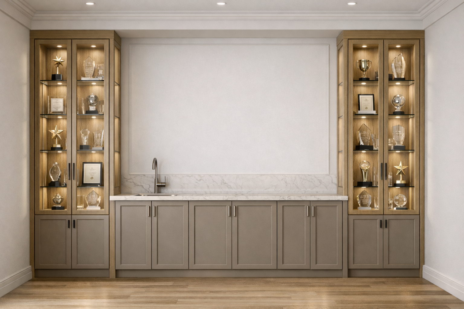 add a tv mounted on the wall in the middle remove the stone backsplash in the middle