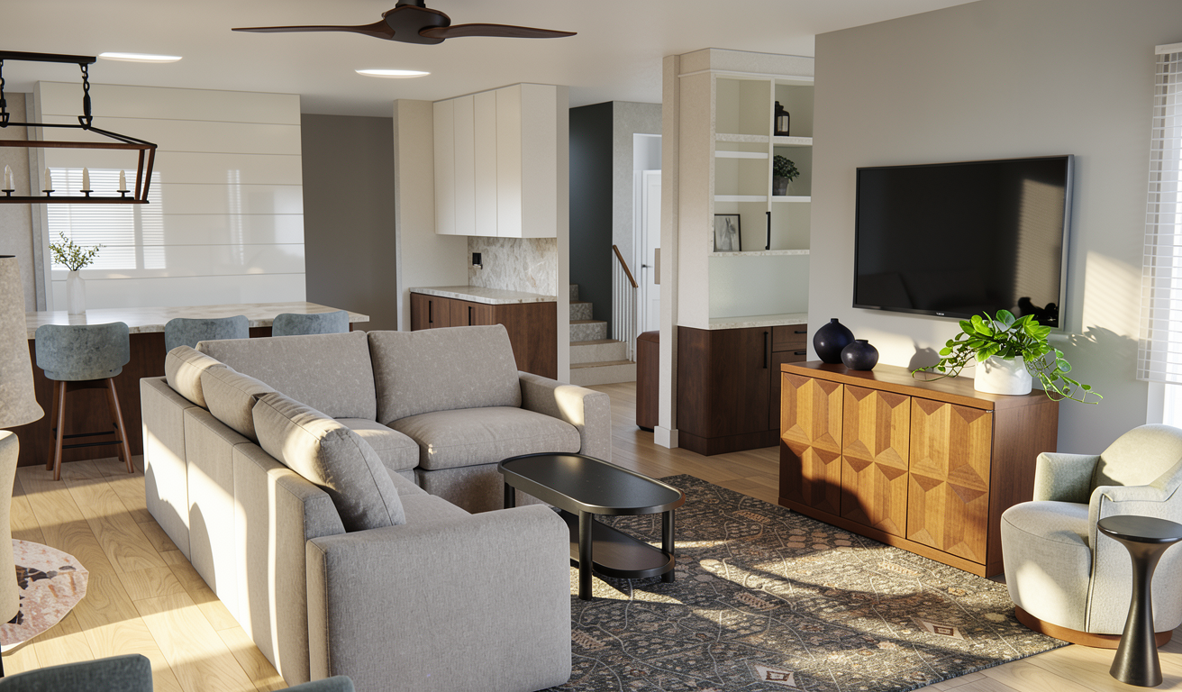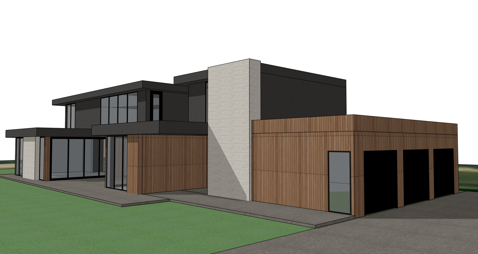 home is in a mature uppscale residential neighbourhood amongst large older homes there are a handful of very large mature oak and elm trees in the foreground and backgournd setting is just before dusk there should be some very modern short landscaping shown