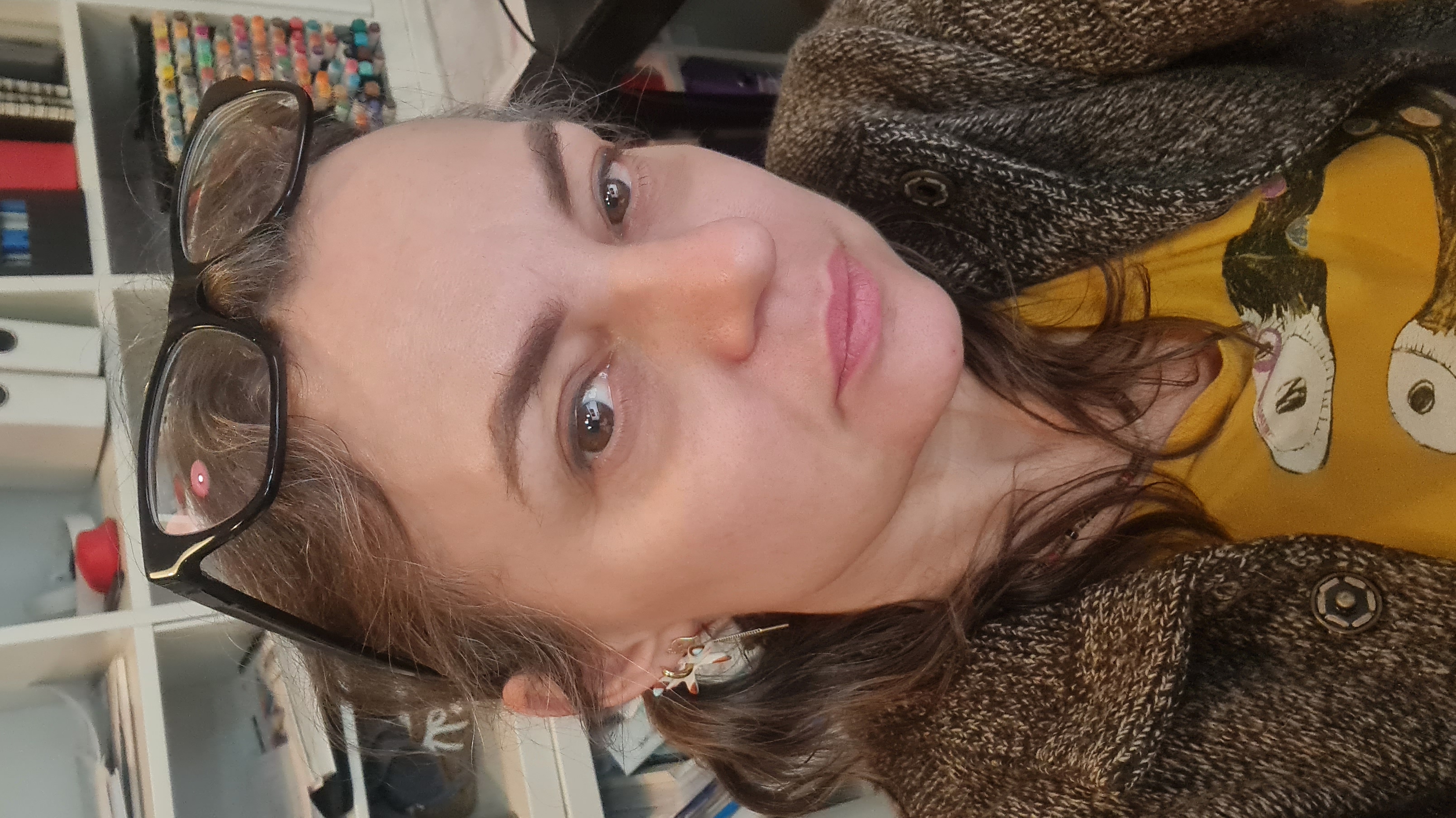 a realistic portrait of a woman based on the reference image her face naturally preserved and recognizable she is standing on a wide empty sandy beach with a calm blue ocean in the background under a clear sky she is wearing a light elegant white shirt her regular glasses are replaced with stylish sunglasses her face is softly retouched smooth clear skin no wrinkles even complexion natural beauty enhancement without looking artificial subtle sun kissed glow on the skin natural daylight soft and warm lighting realistic colors gentle depth of field calm beach atmosphere professional portrait photography style