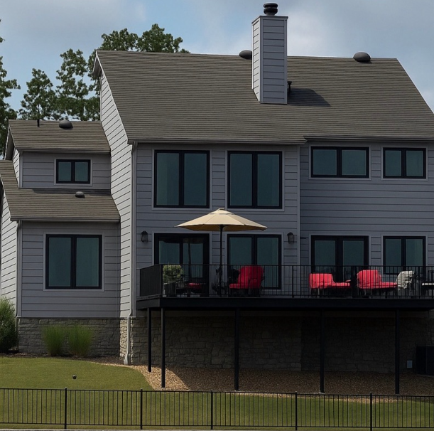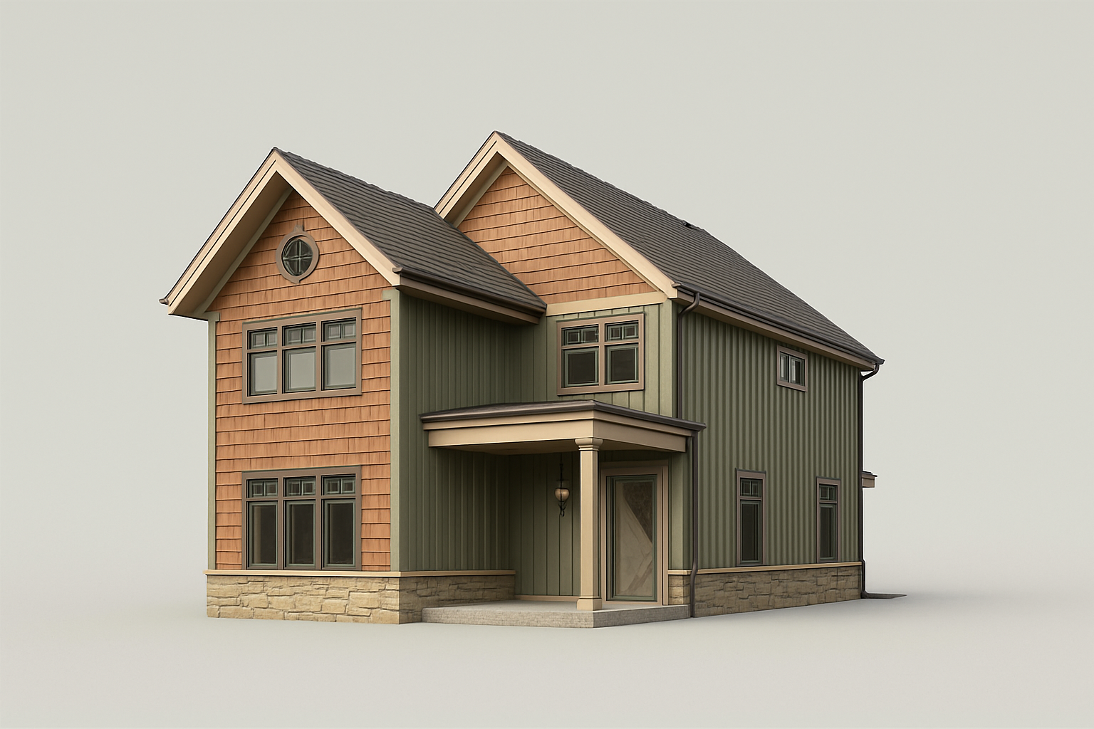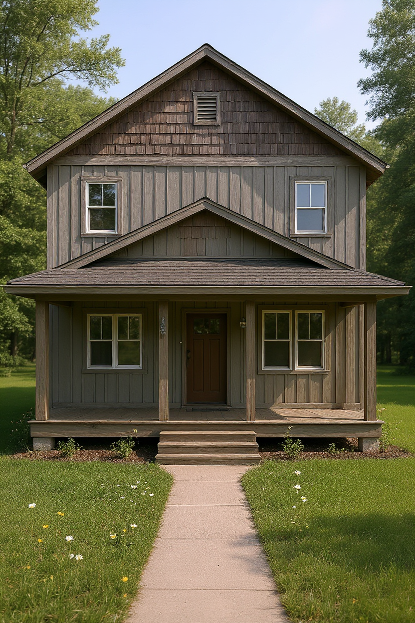 make the solid color lap siding on the house the color of the reference image