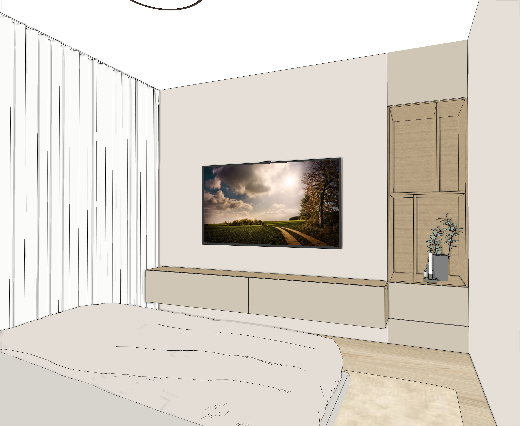 render maintain colour and furnitures add solid natural light from the window direction and add solid led under the media unit