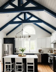 please make this room a nautical style office and remove the white t g on the ceiling only keep the blue outline beams on the ceiling