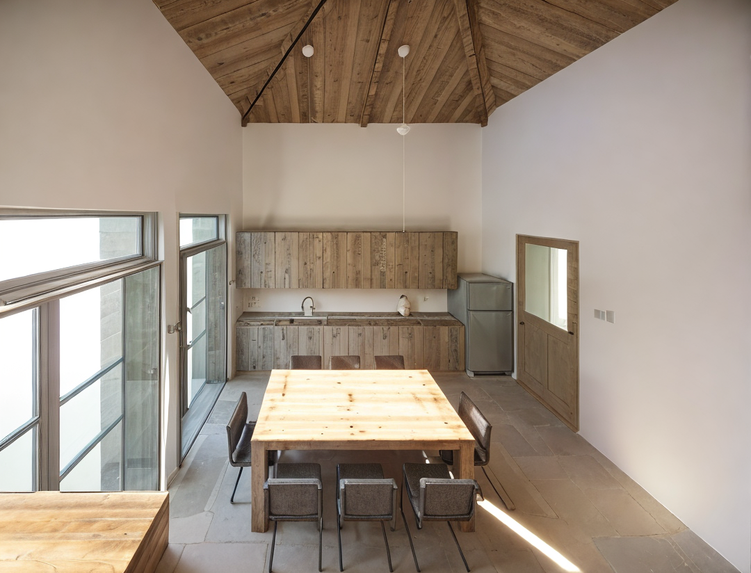 preserve geometry lighting and colors replace painting with a jackson pollock painting make ceiling white make exterior wall olive green in color