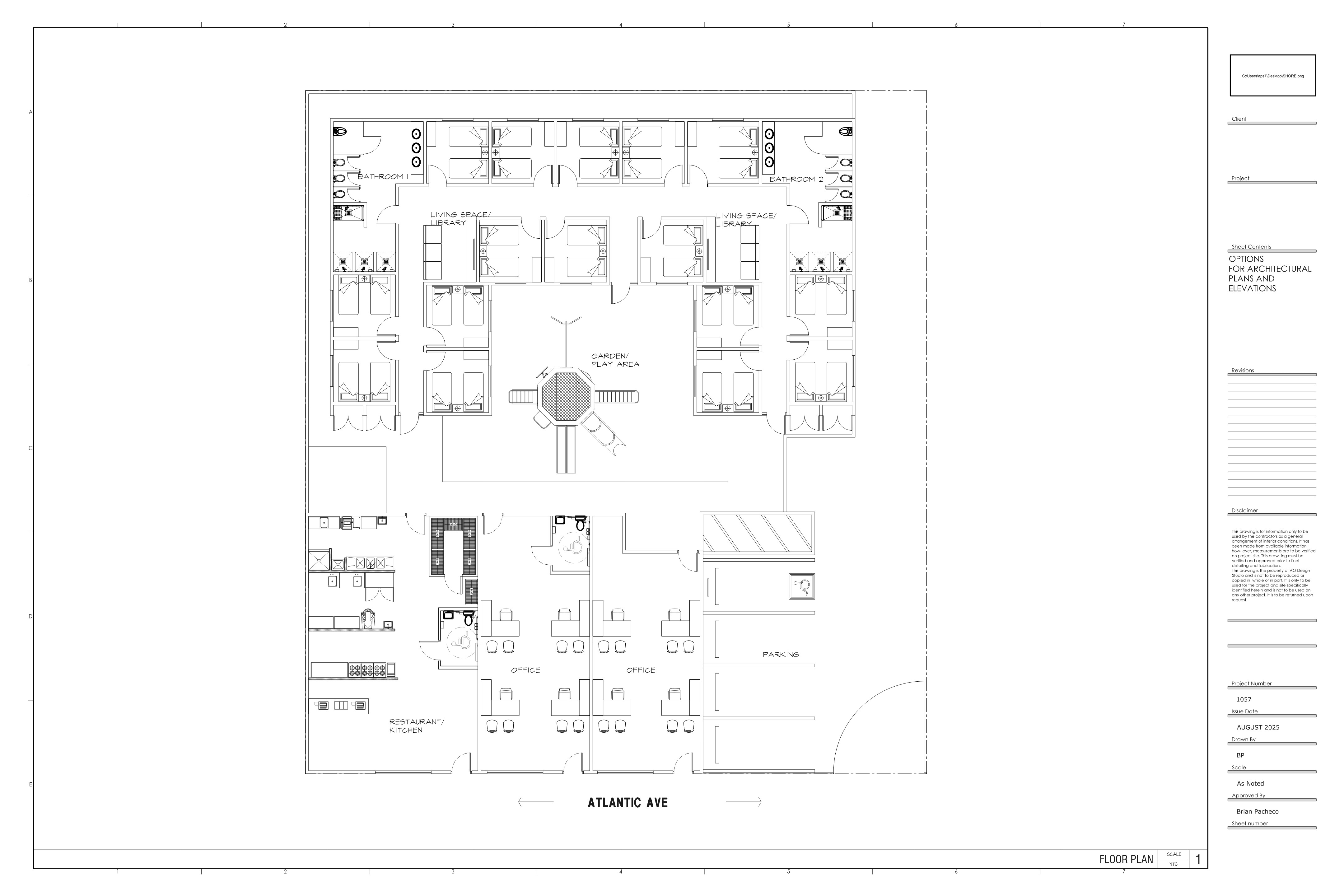 exterior shot industrial kitchen all room with single beds parking on the side and garden in the middle