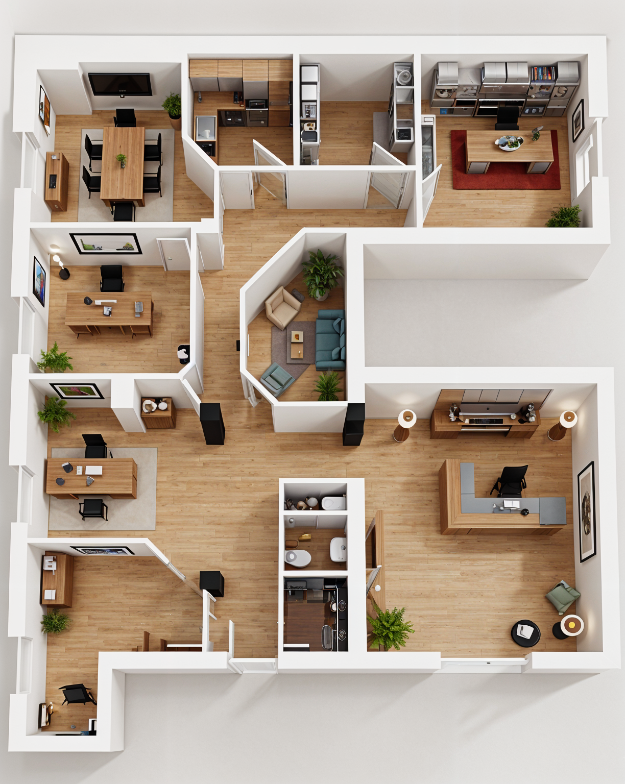 convert this floor plan into a realistic isometric 3d view of a full house show the space from an elevated angle with furniture walls and details visible colori e materiali tenui use the same furniture as shows on the plan do not change the orientation of the floorplan
