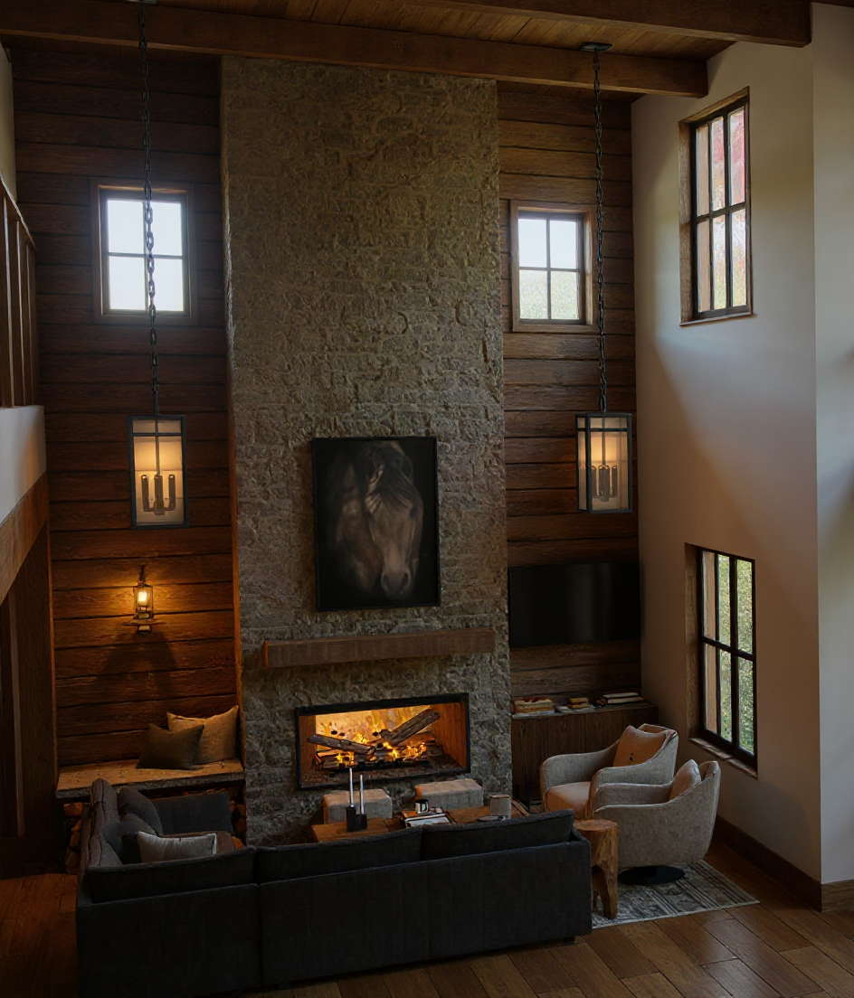 rustic but light and bright add lighting to brighten space