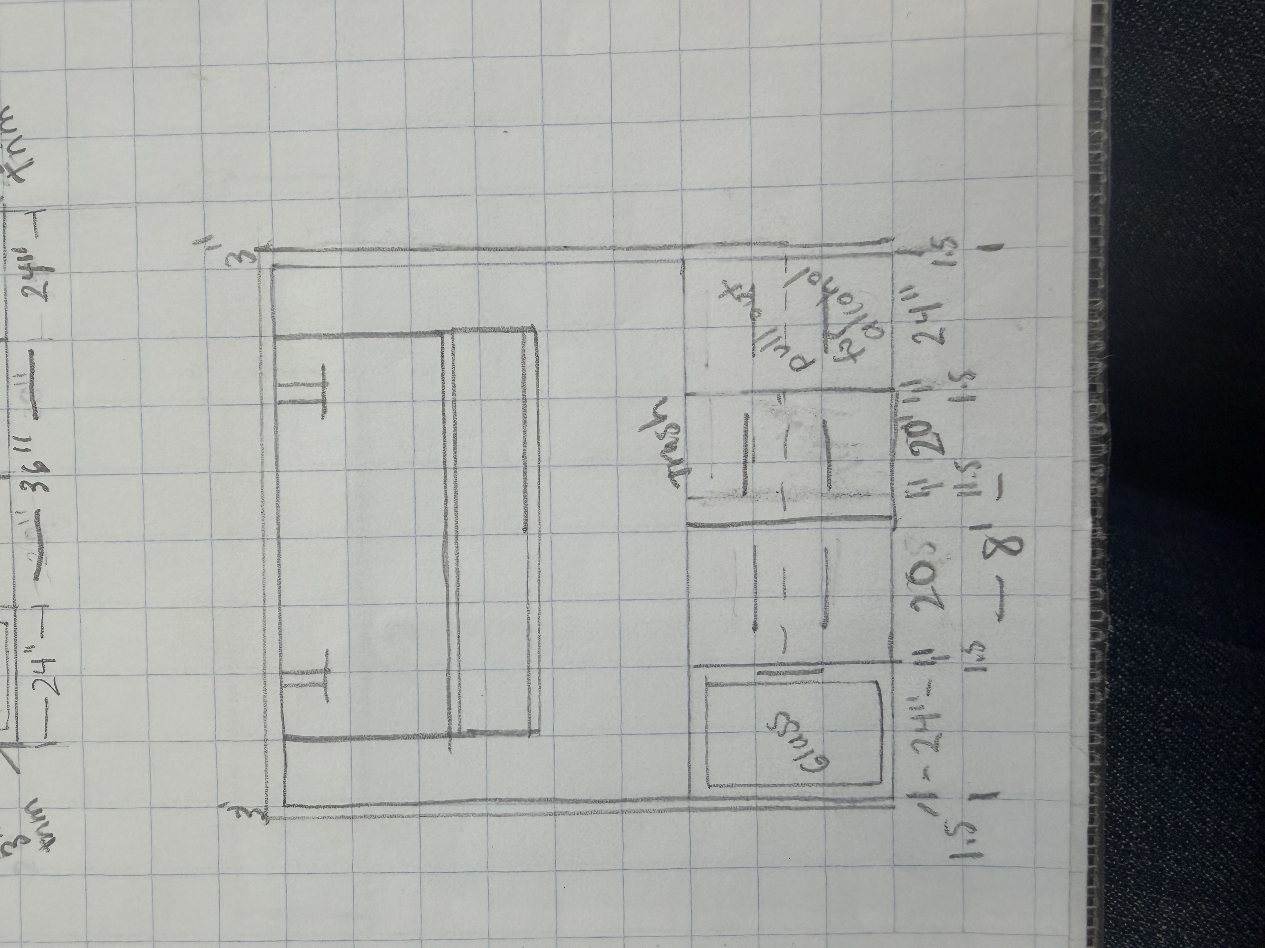 make this cad bar drawing look realistic it is trimmed in white oak the cabinets are tricorn black there is a sub zero under counter bar fridge with a glass door and cabinet trim the other three cabinets are drawer stacks with modern cabinet faces there is a glass tile backsplash there are iron glass shelves with glasses hanging from the top of the trim please include dimensions each square is 12 by 12