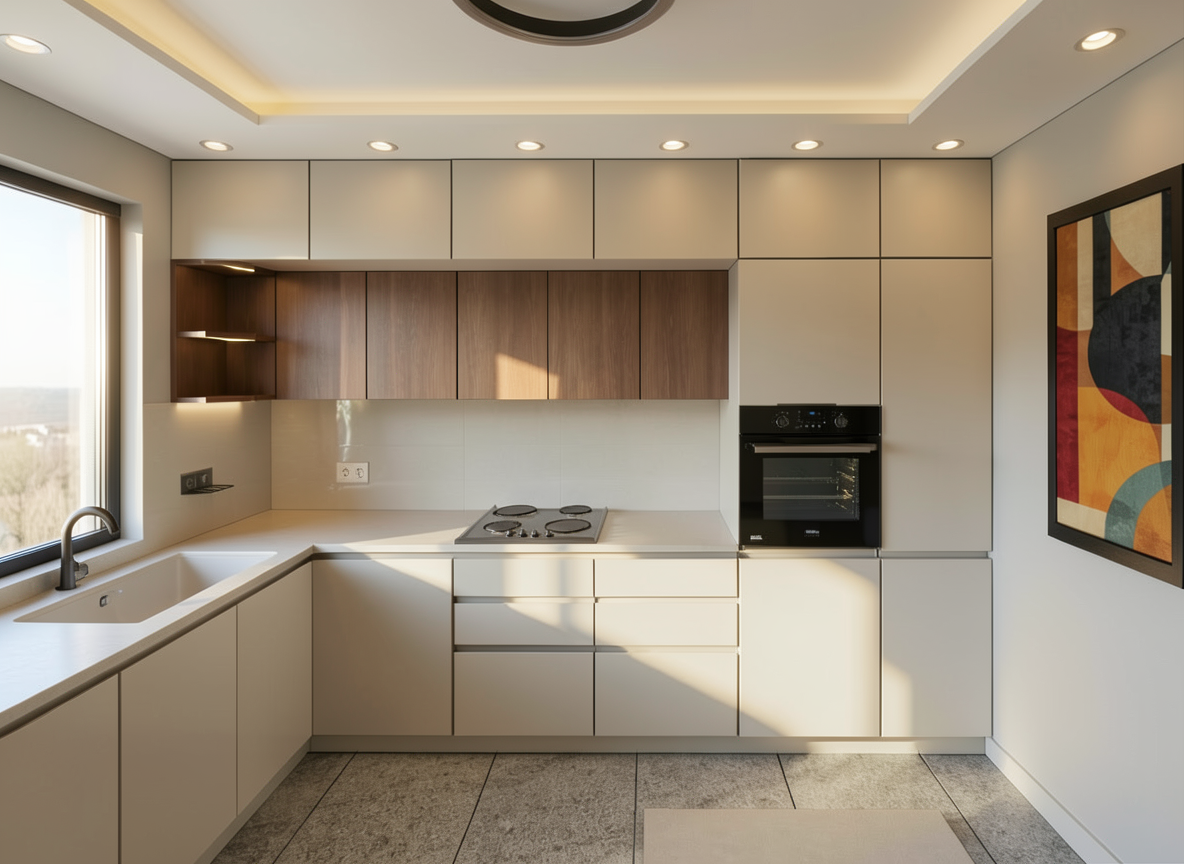 ontemporary kitchen mantain colours add accessories add spot lights to ceiling