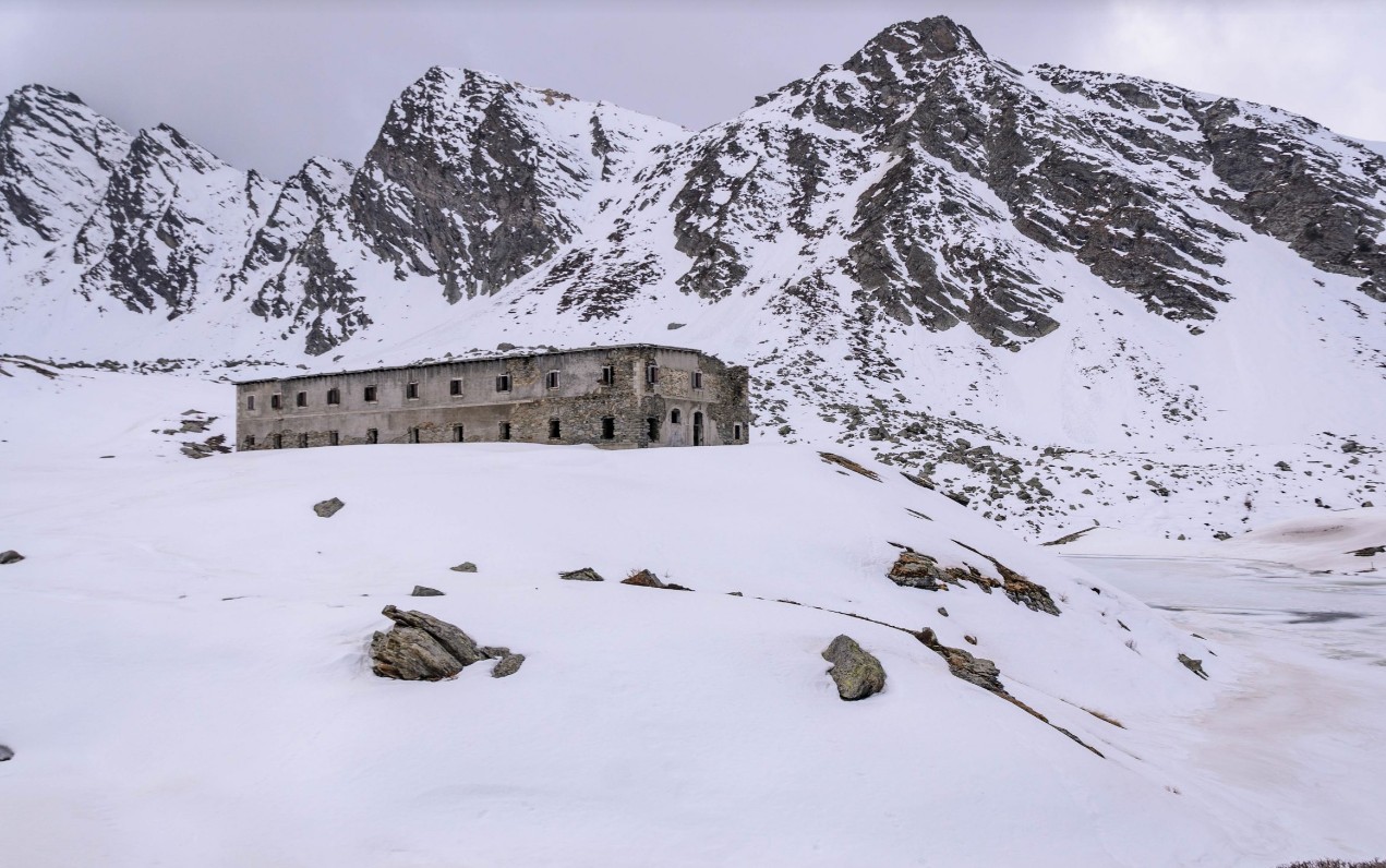 restaura in modo leggero il fabbricato nella foto fai vedere la luce accesa all interno mantieni la sagoma la copertura in coperta parzialmente di neve