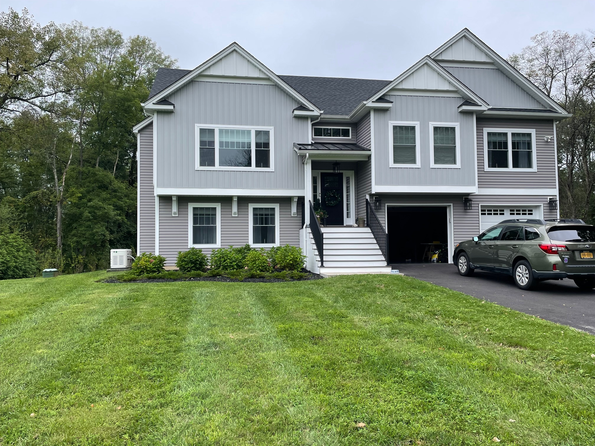 classical exterior shot add fieldstone to house exterior add white fascia to the roof line add black shutters to all windows add white corner posts to the house edges keep the white bellybands on the house exterior add a second matching white column on the porch add white thick window casings with crown to all the windows architecture