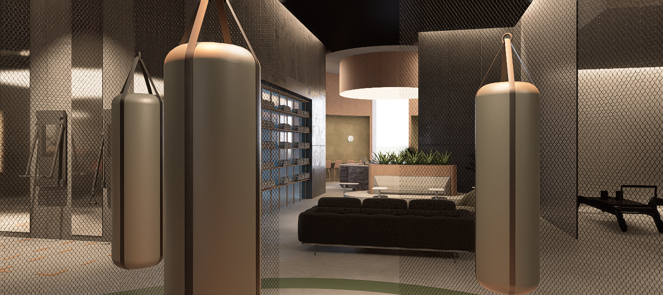 cyberpunk upscale gym spa luxury digital interface calm serene