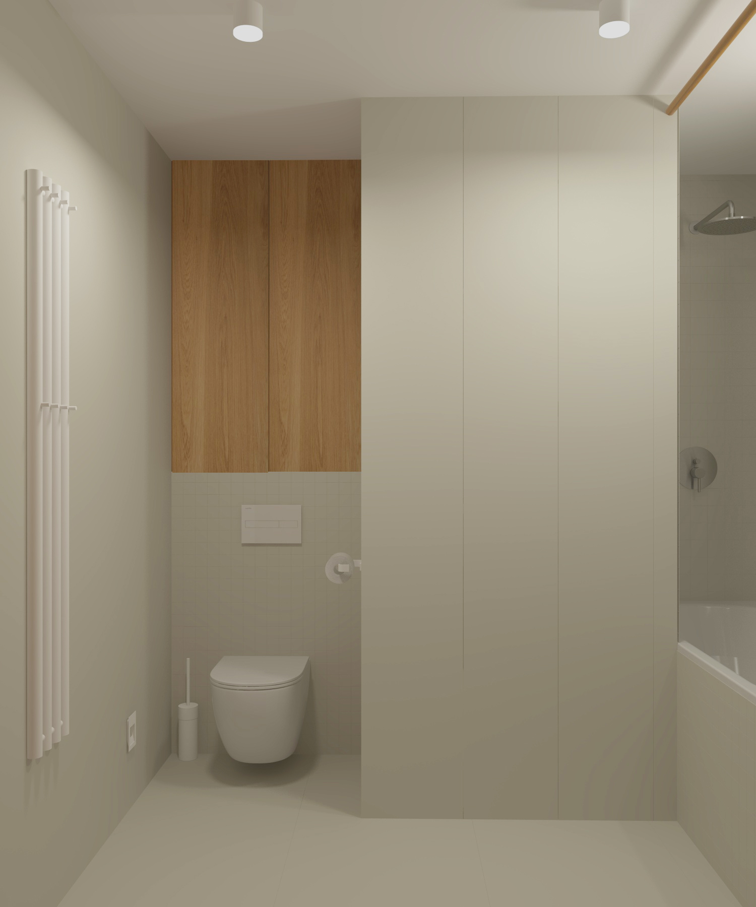 do not modify the original model geometry proportions layout structure or placement of any elements keep the exact same architecture forms and design do not alter or redesign any objects in the scene only improve the materials textures and surface details to achieve a significantly more realistic result enhance material accuracy using physically correct textures proper roughness values reflections bump normal maps and subtle surface imperfections maintain the original material intent while improving realism the scene is illuminated by ceiling lighting the lighting should feel natural and believable with realistic light intensity soft shadows accurate reflections and balanced exposure improve global illumination and realistic light interaction with all materials focus on high end photorealism through refined material definition realistic reflections subtle imperfections and natural color grading without changing the model geometry layout or design in any way colour balans is neutral the tile colour is vanila